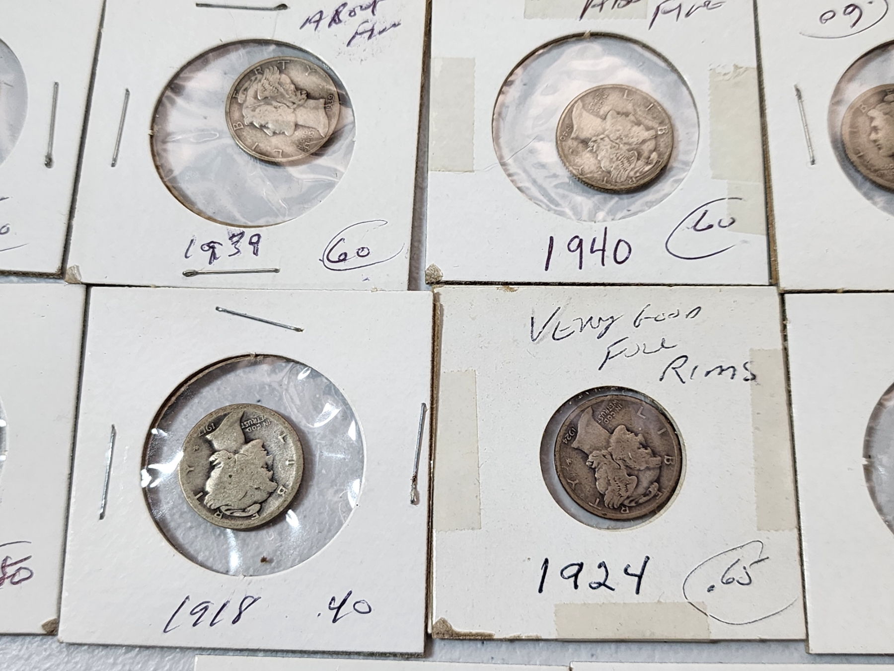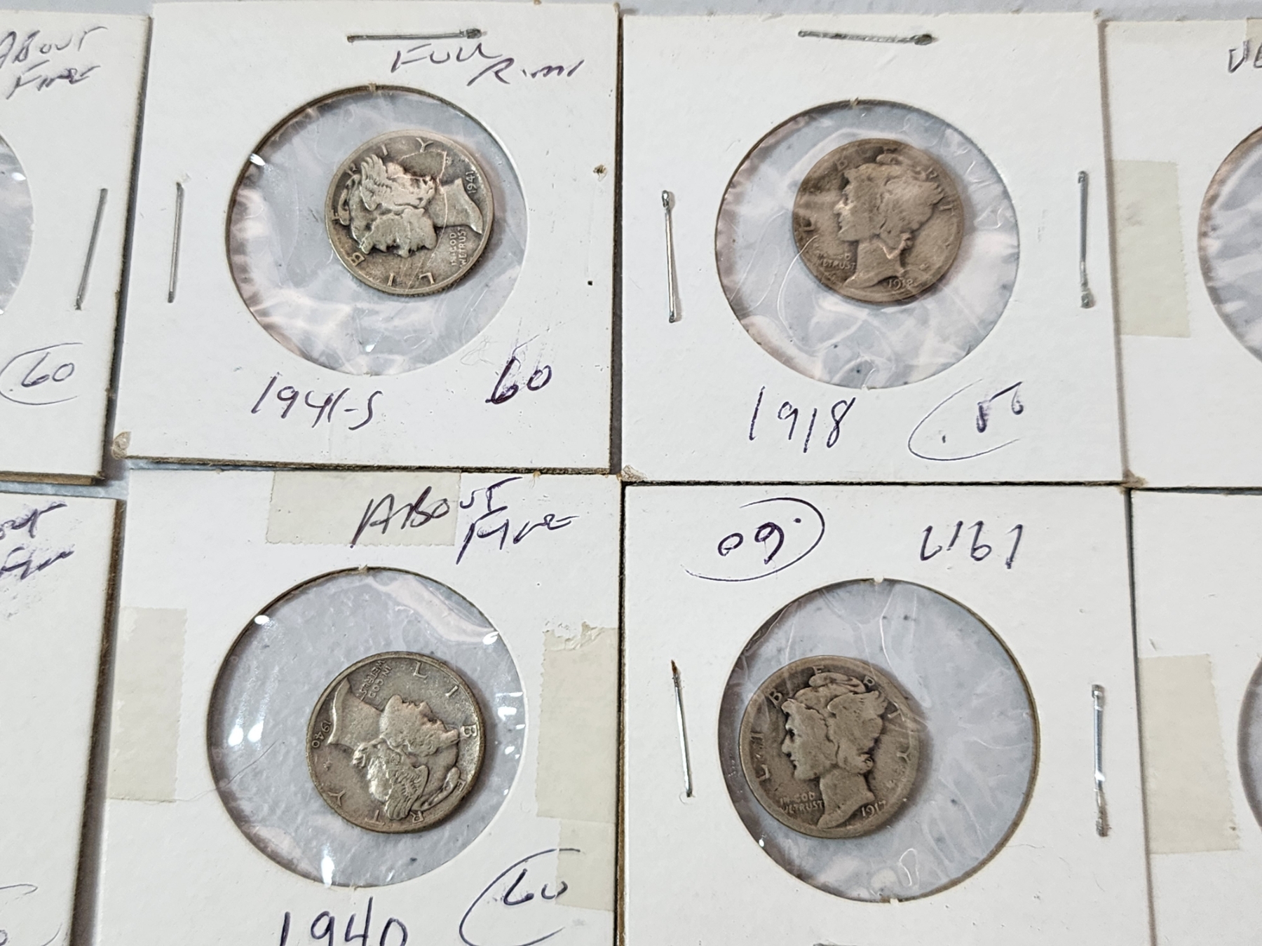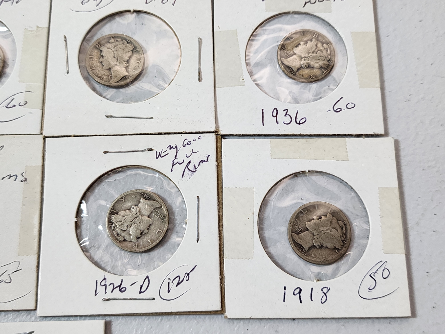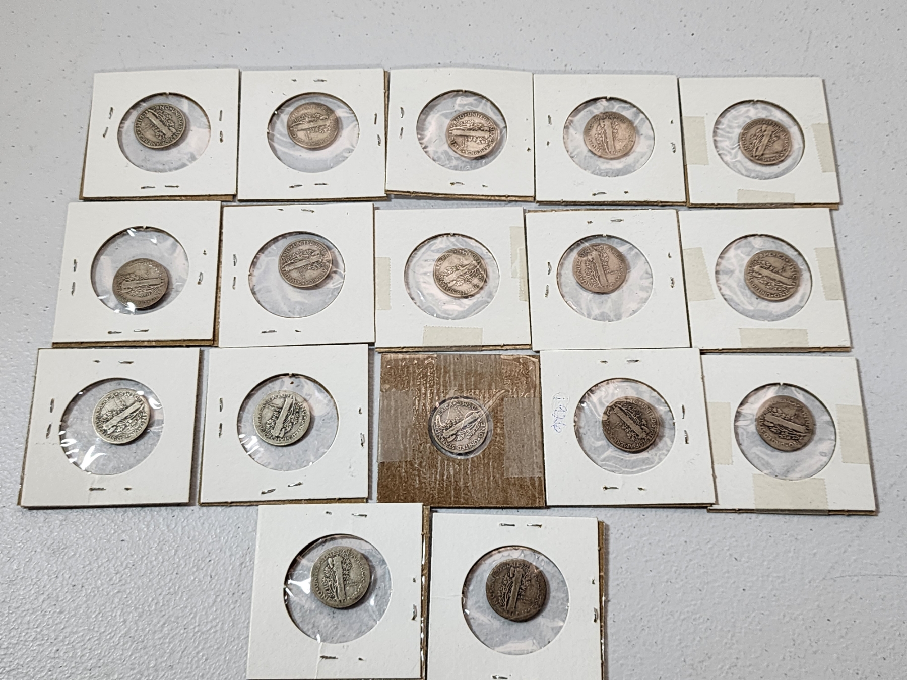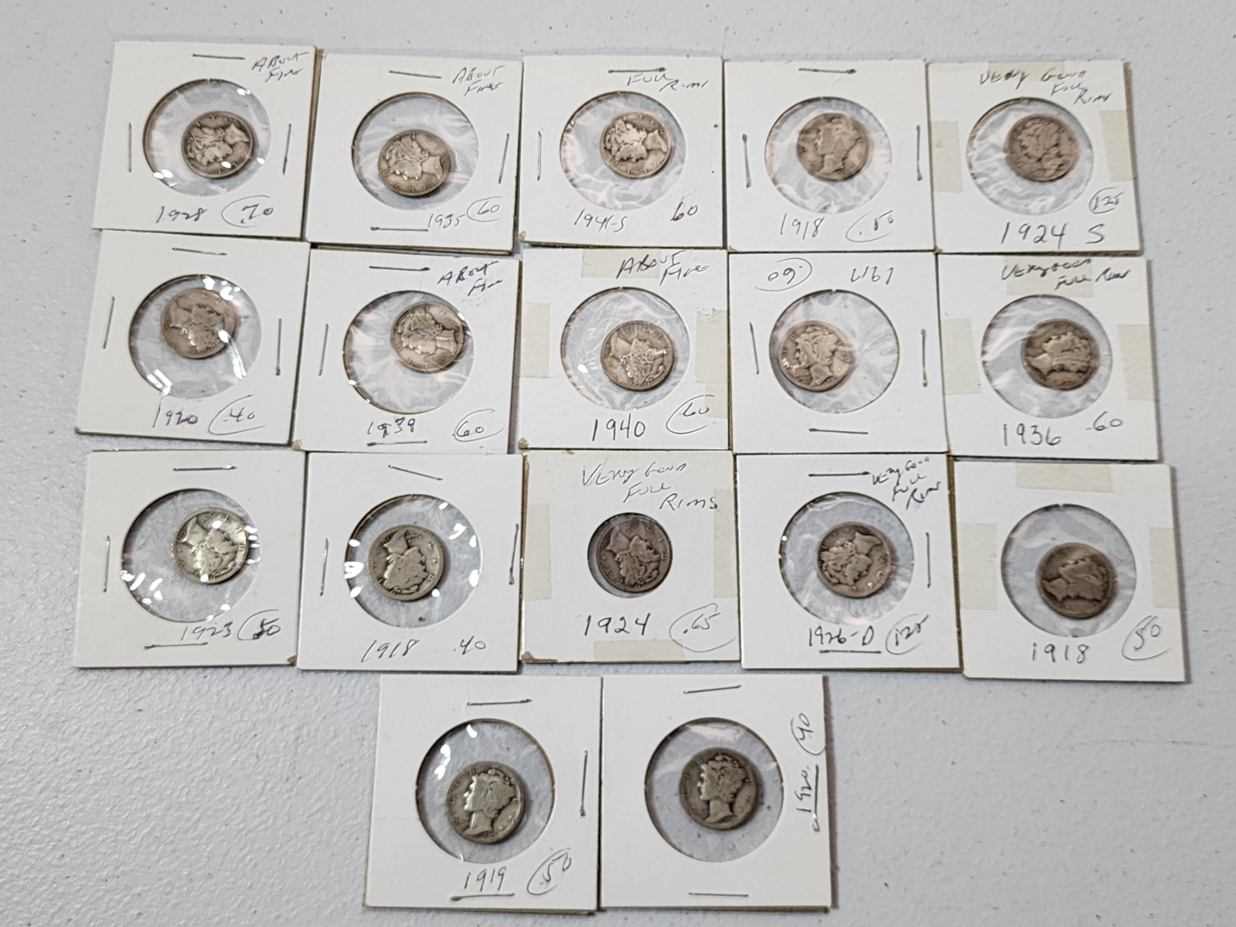 x17 Assorted Years 90% Silver Mercury Dimes FV: $1.70