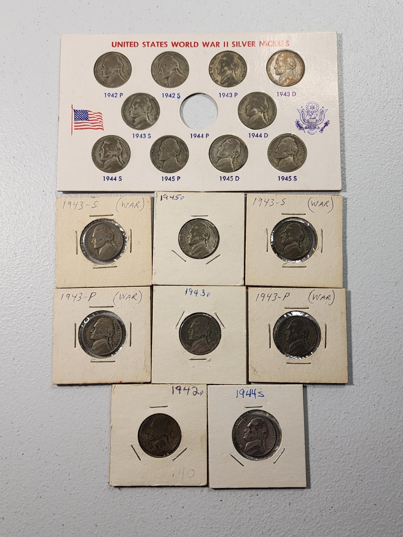 x18 Assorted Years/Mint Marks Wartime 35% Silver Nickels Including Display FV: $0.90