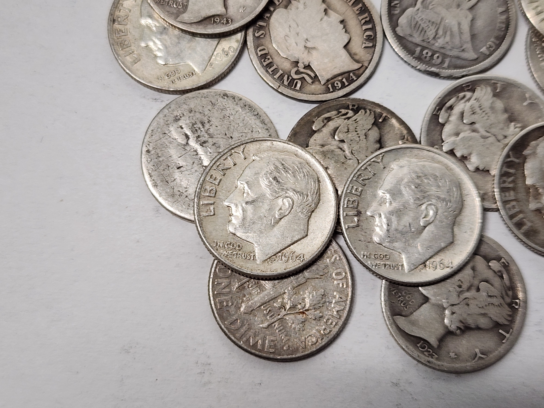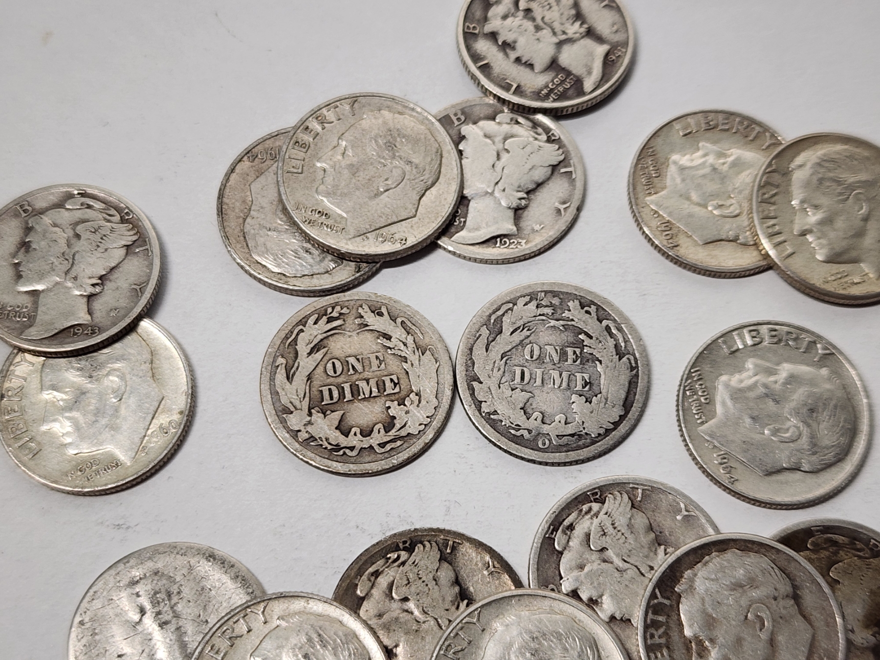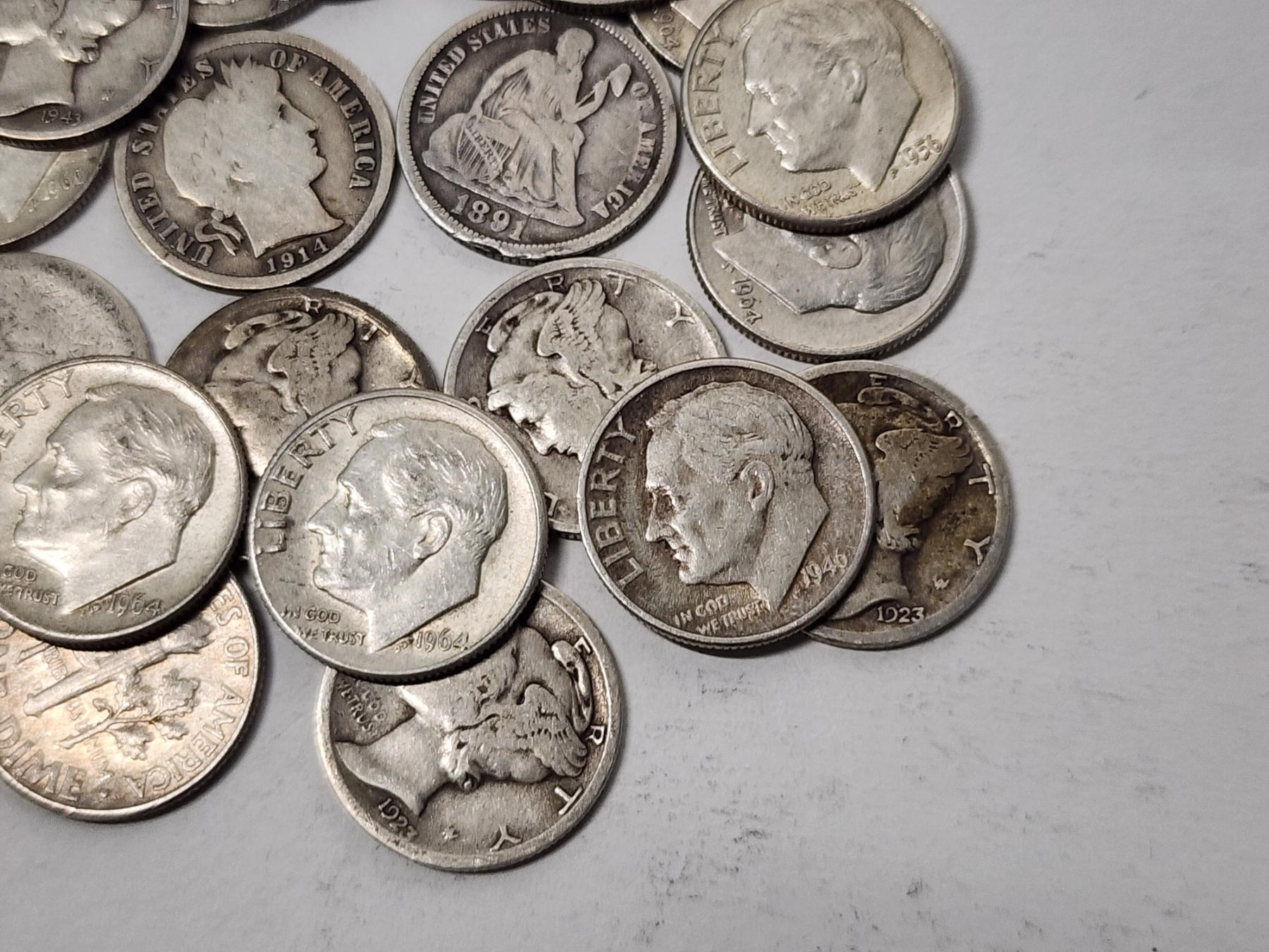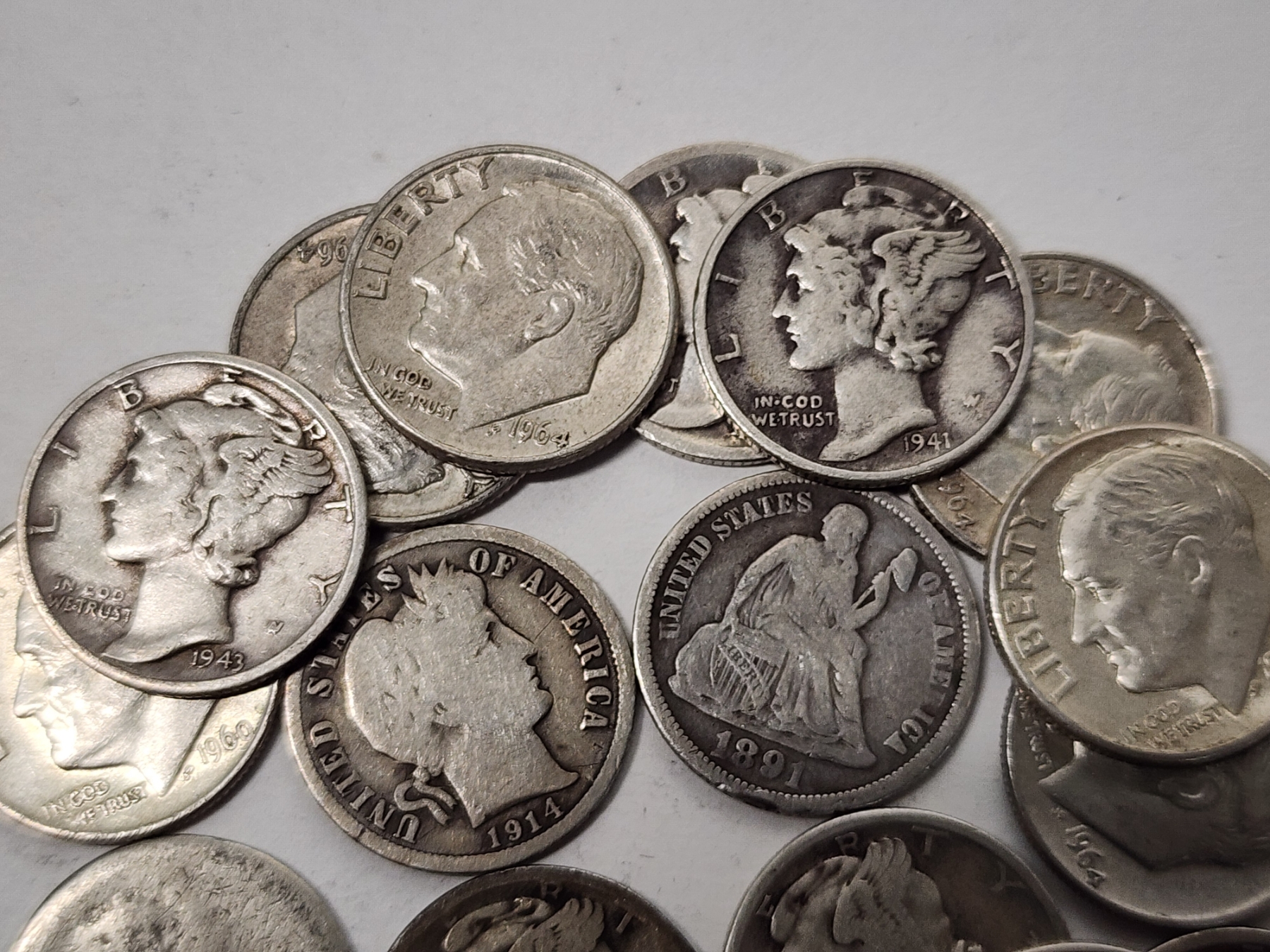 x20 Assorted U.S. 90% Silver Dimes: Seated Liberty, Barber, Mercury, Roosevelt FV: $2.00
