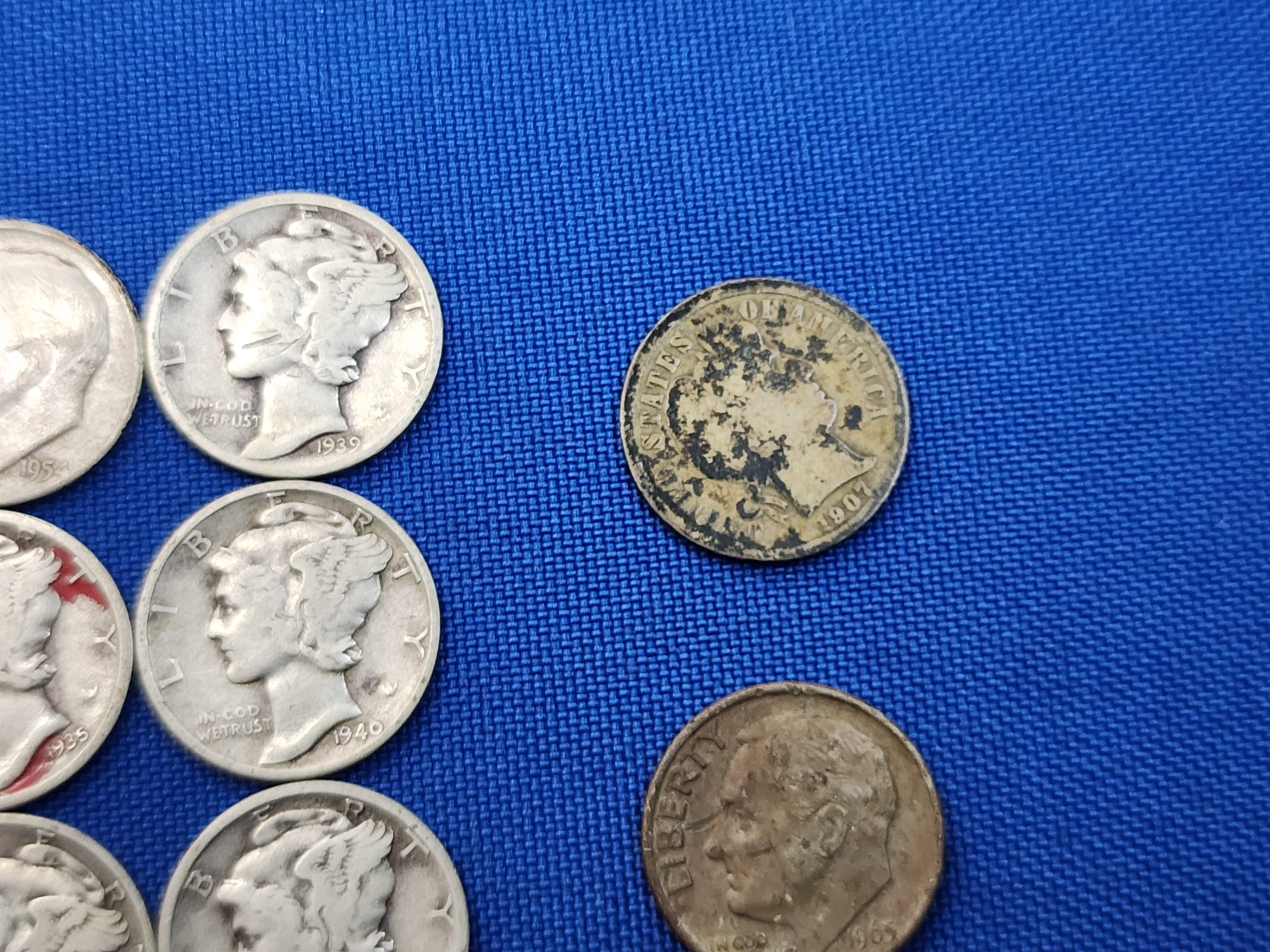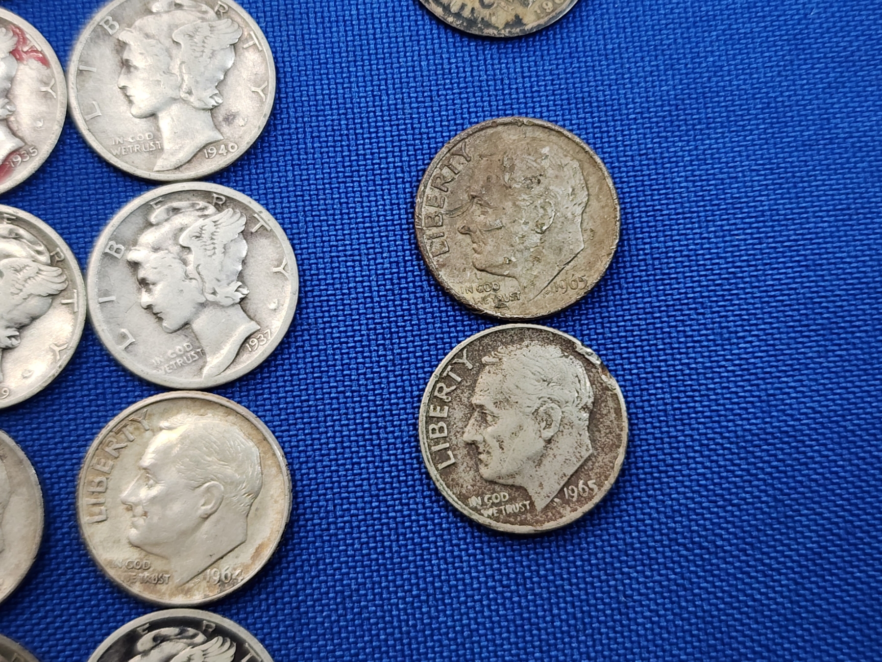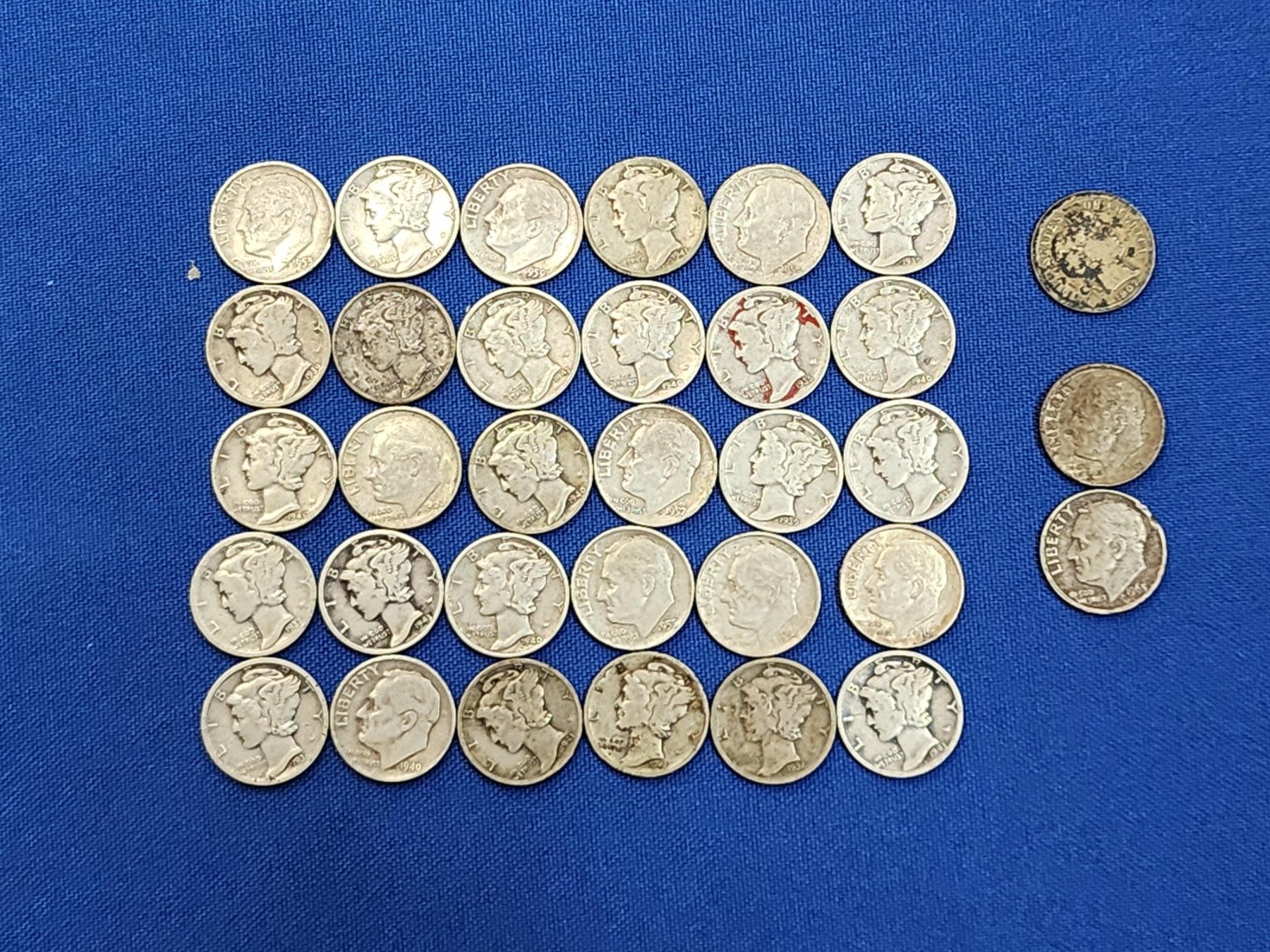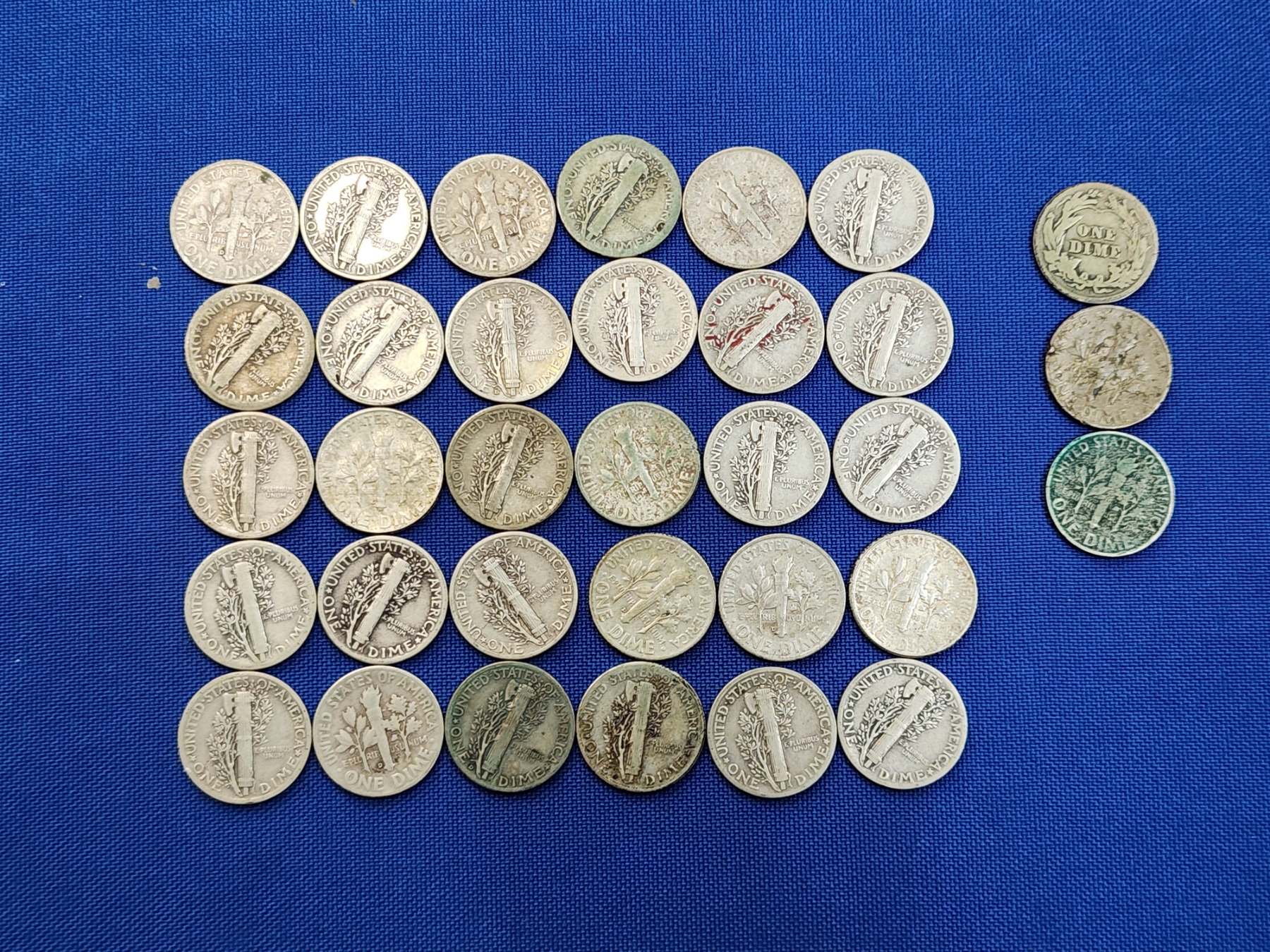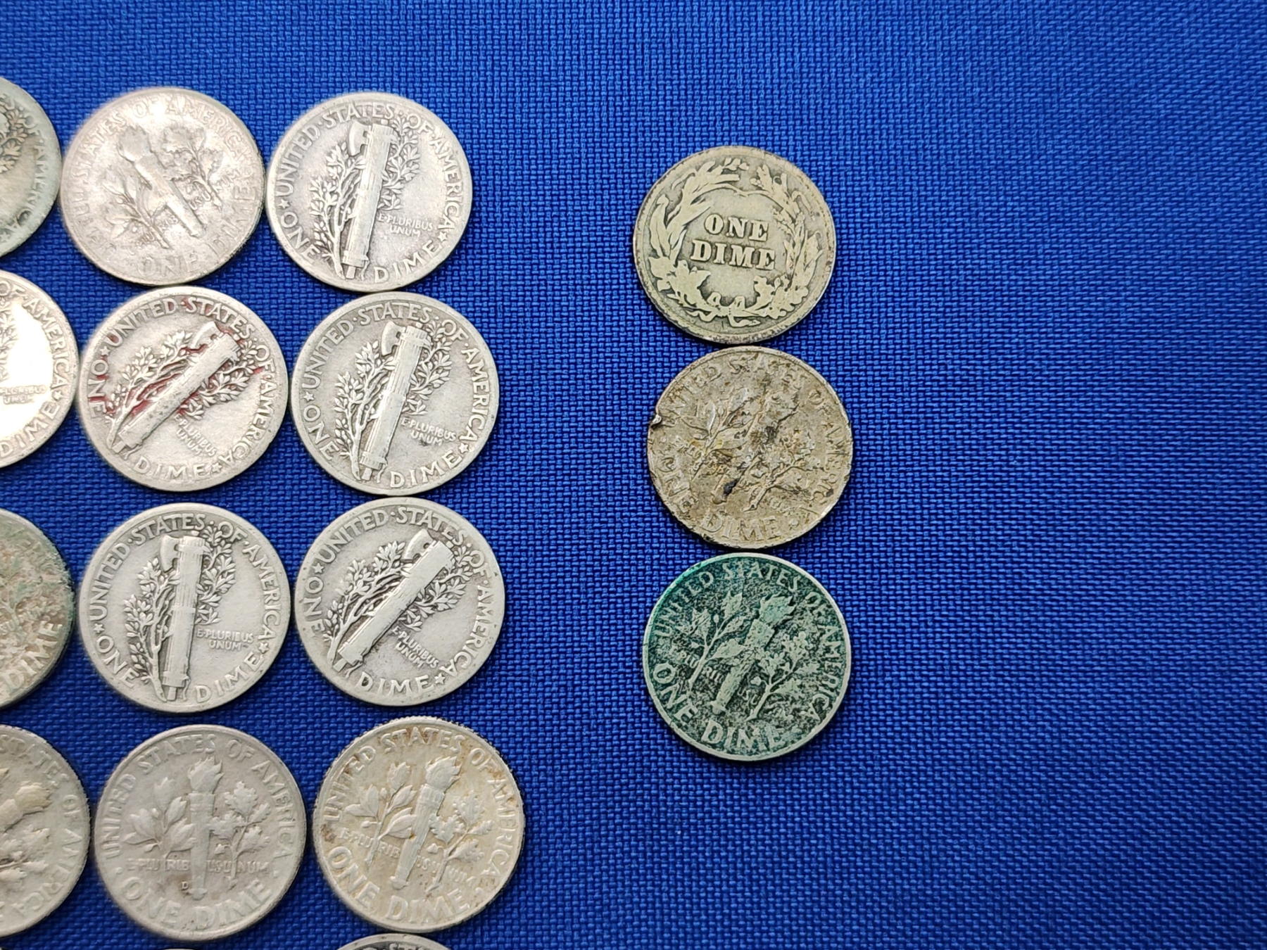x31 Assorted Year Silver Dimes Including Roosevelt, Mercury and (1) Barber FV: $3.10 (includes 2 non silver)