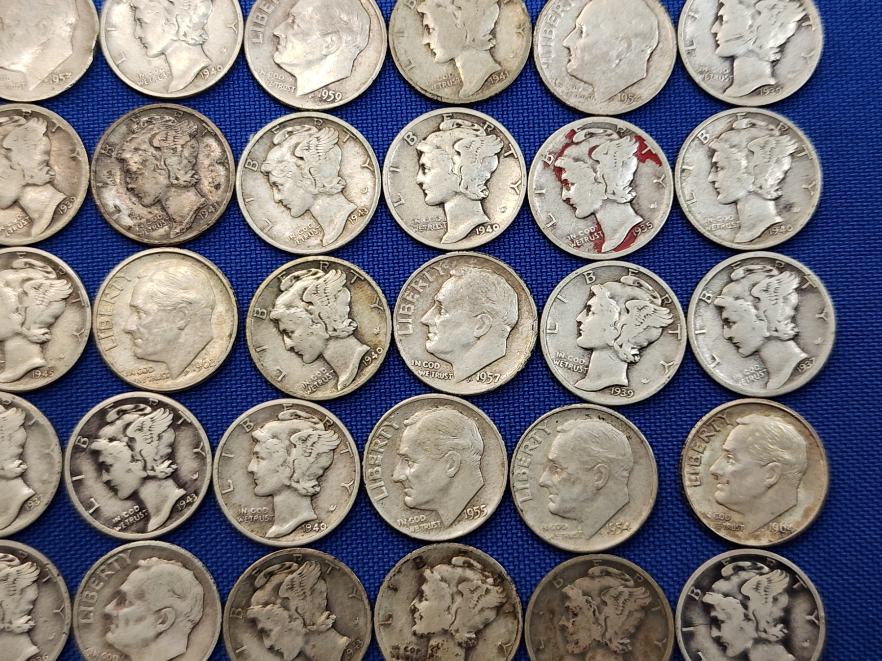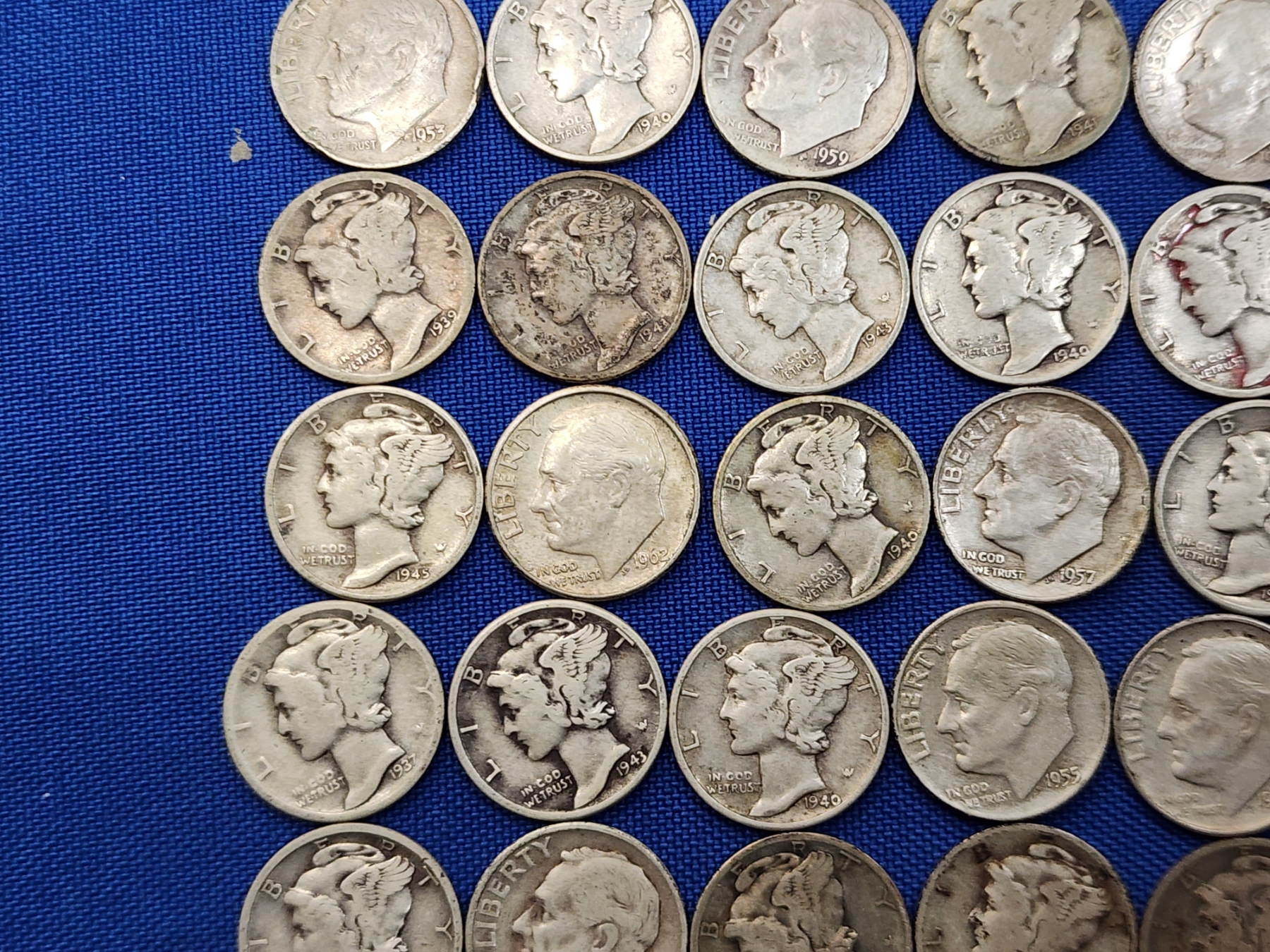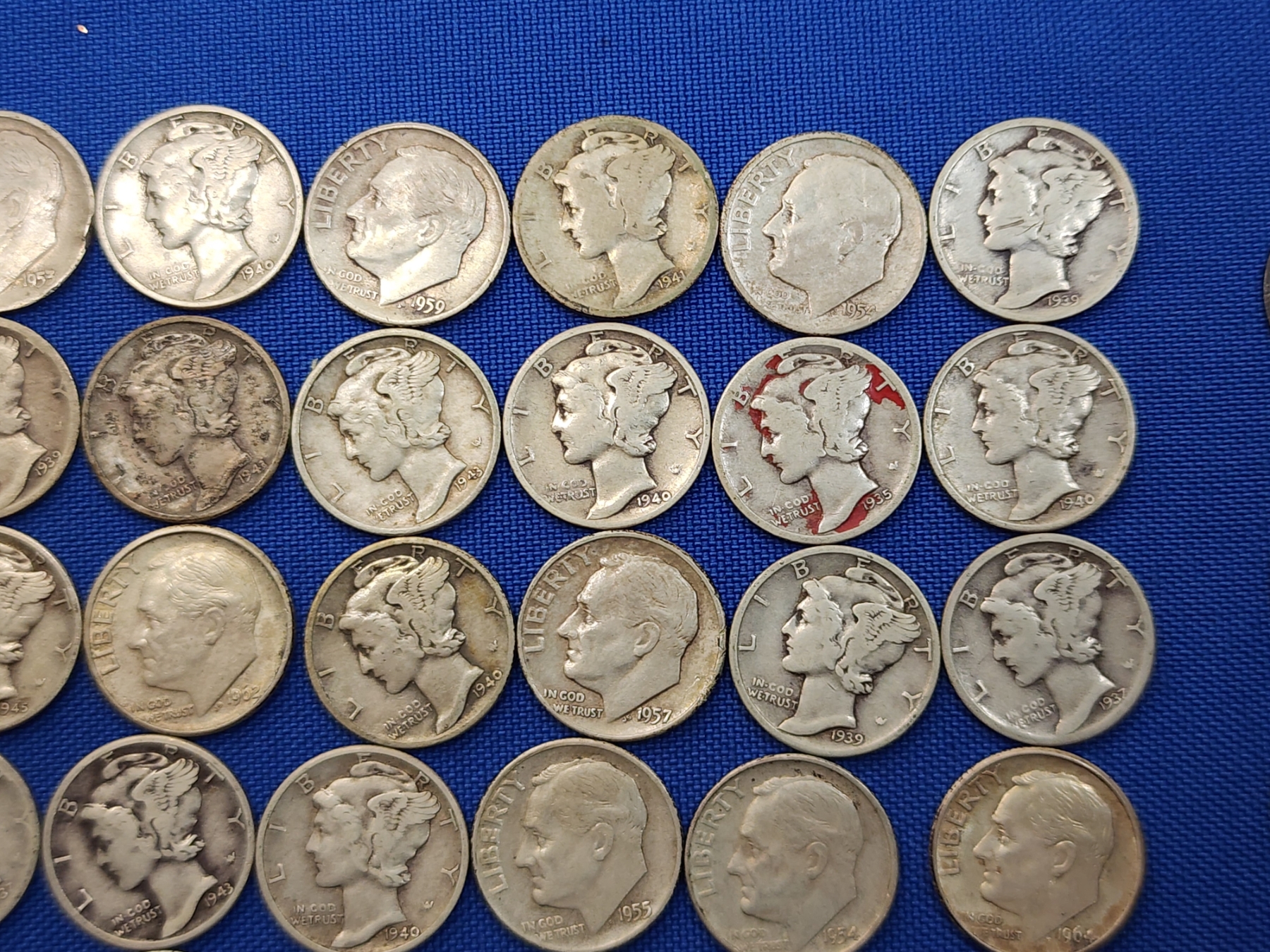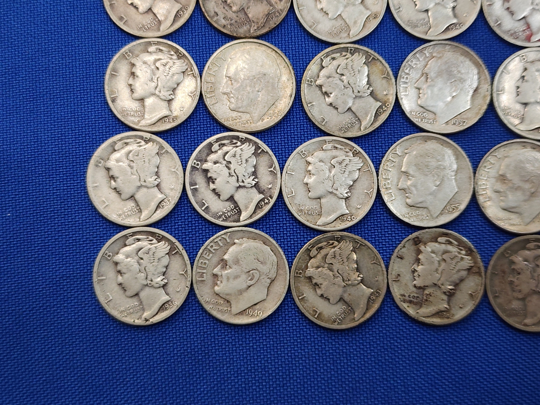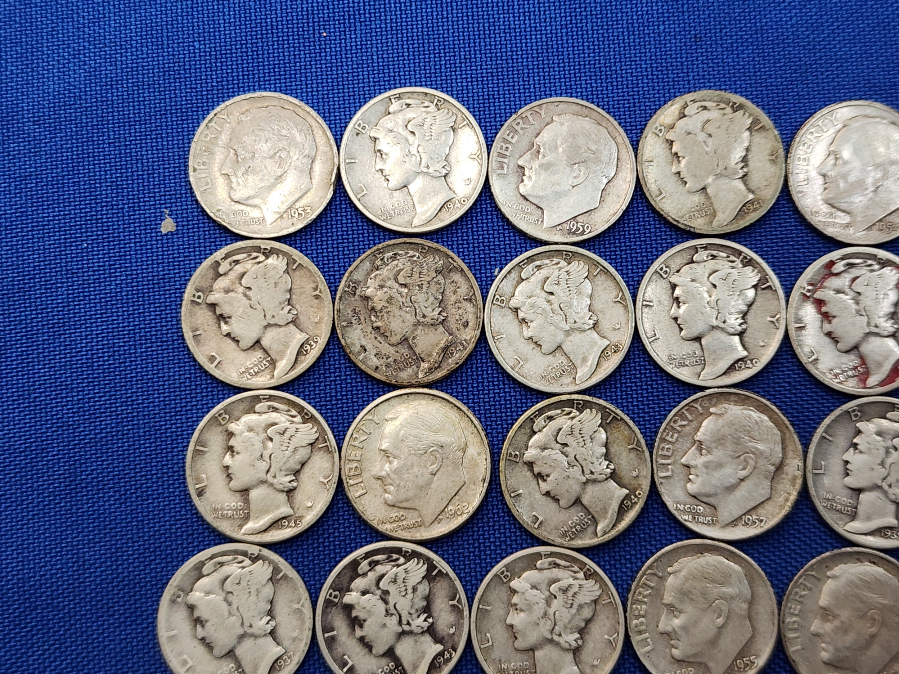x31 Assorted Year Silver Dimes Including Roosevelt, Mercury and (1) Barber FV: $3.10 (includes 2 non silver)