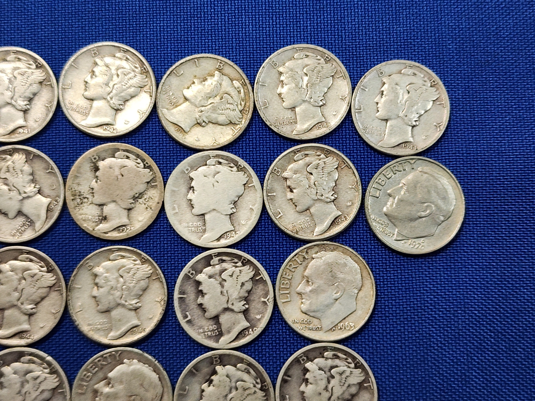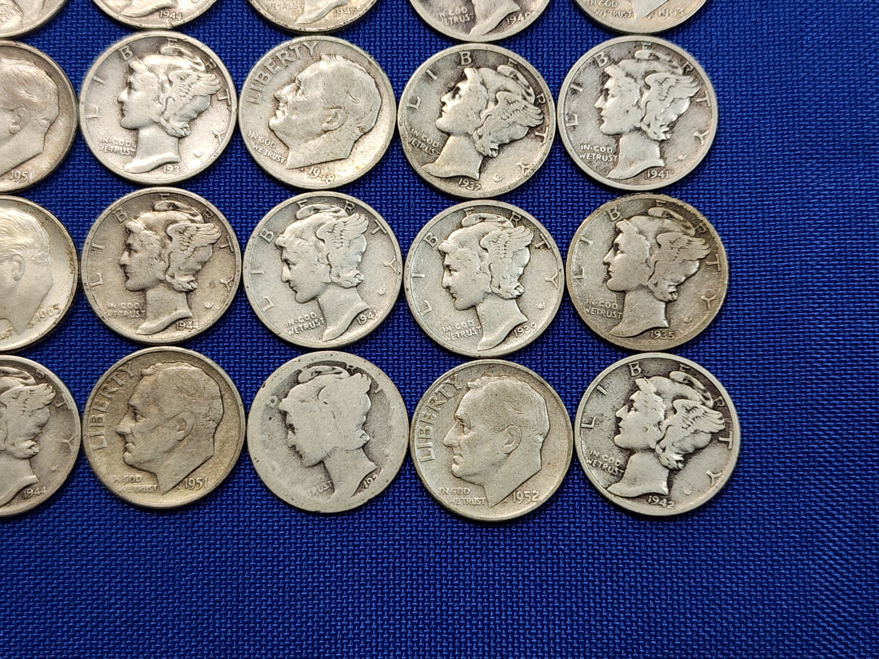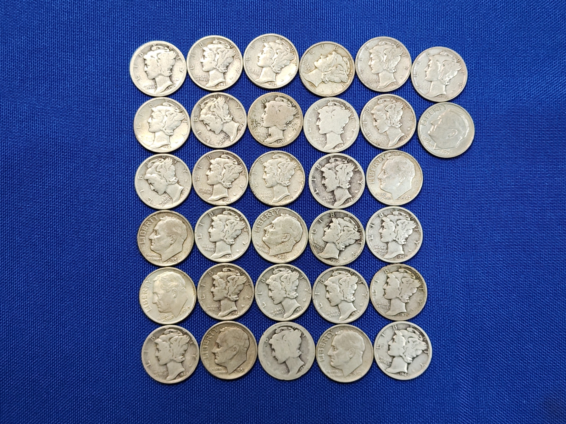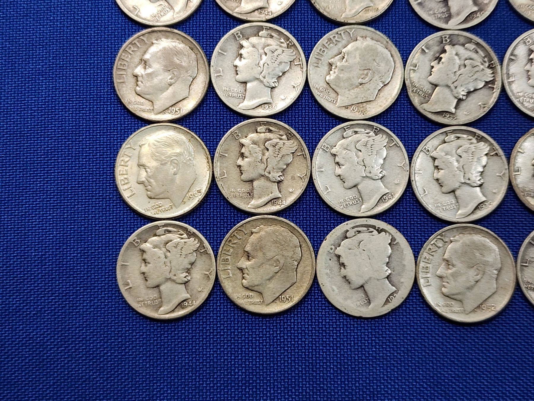 x32 Assorted Year Roosevelt and Mercury Dimes - Mostly Silver - Silver FV: $3.10