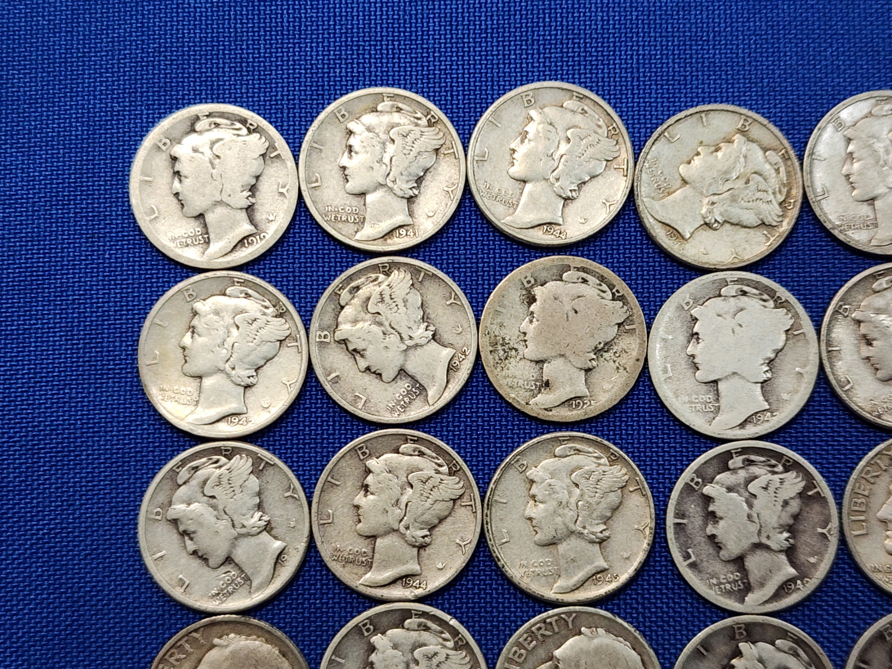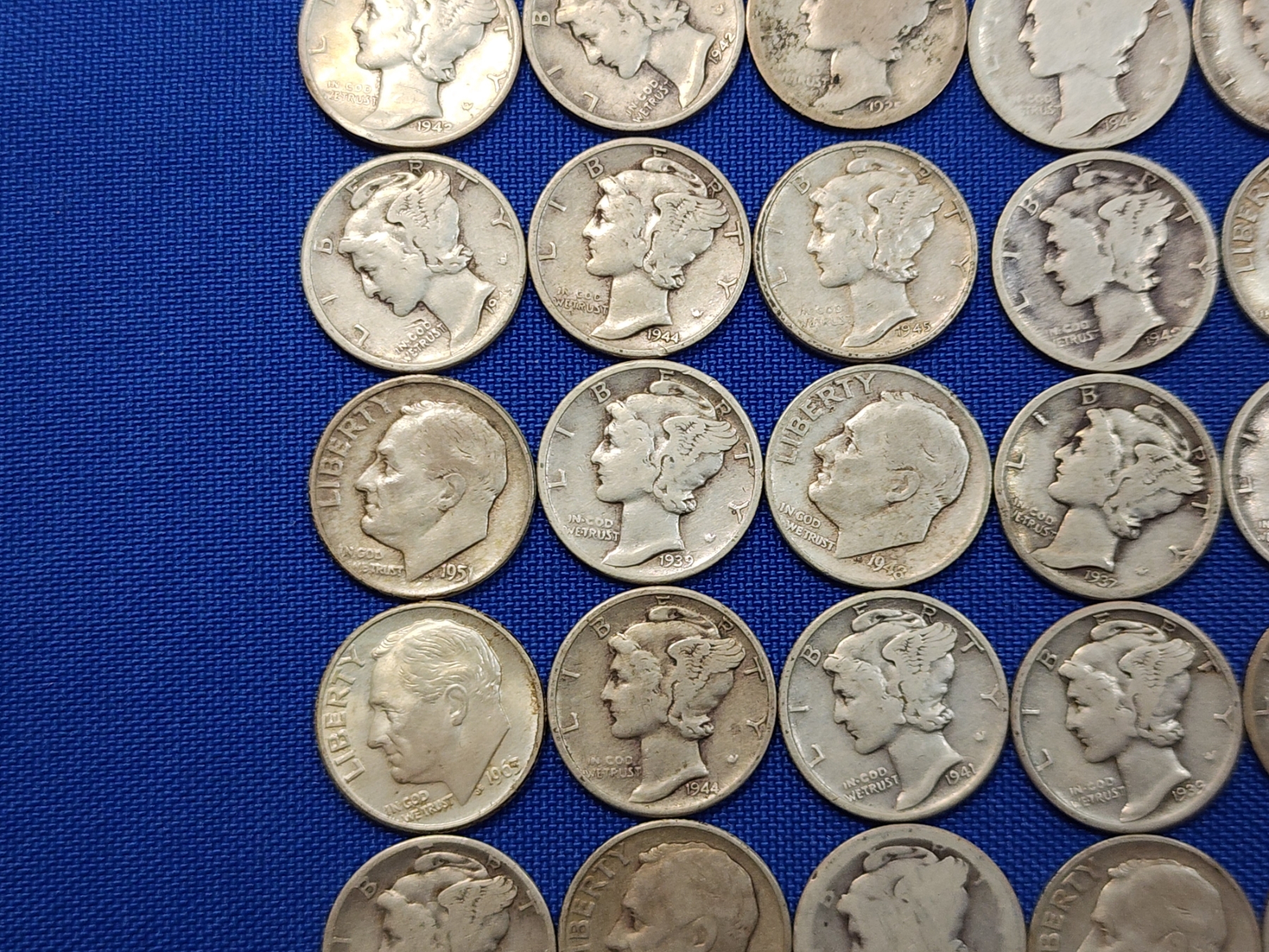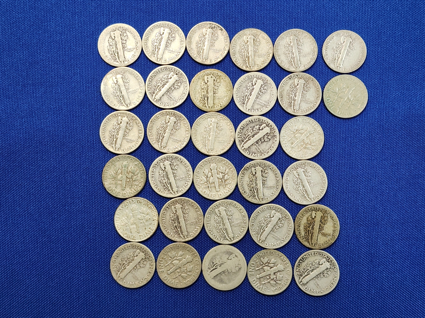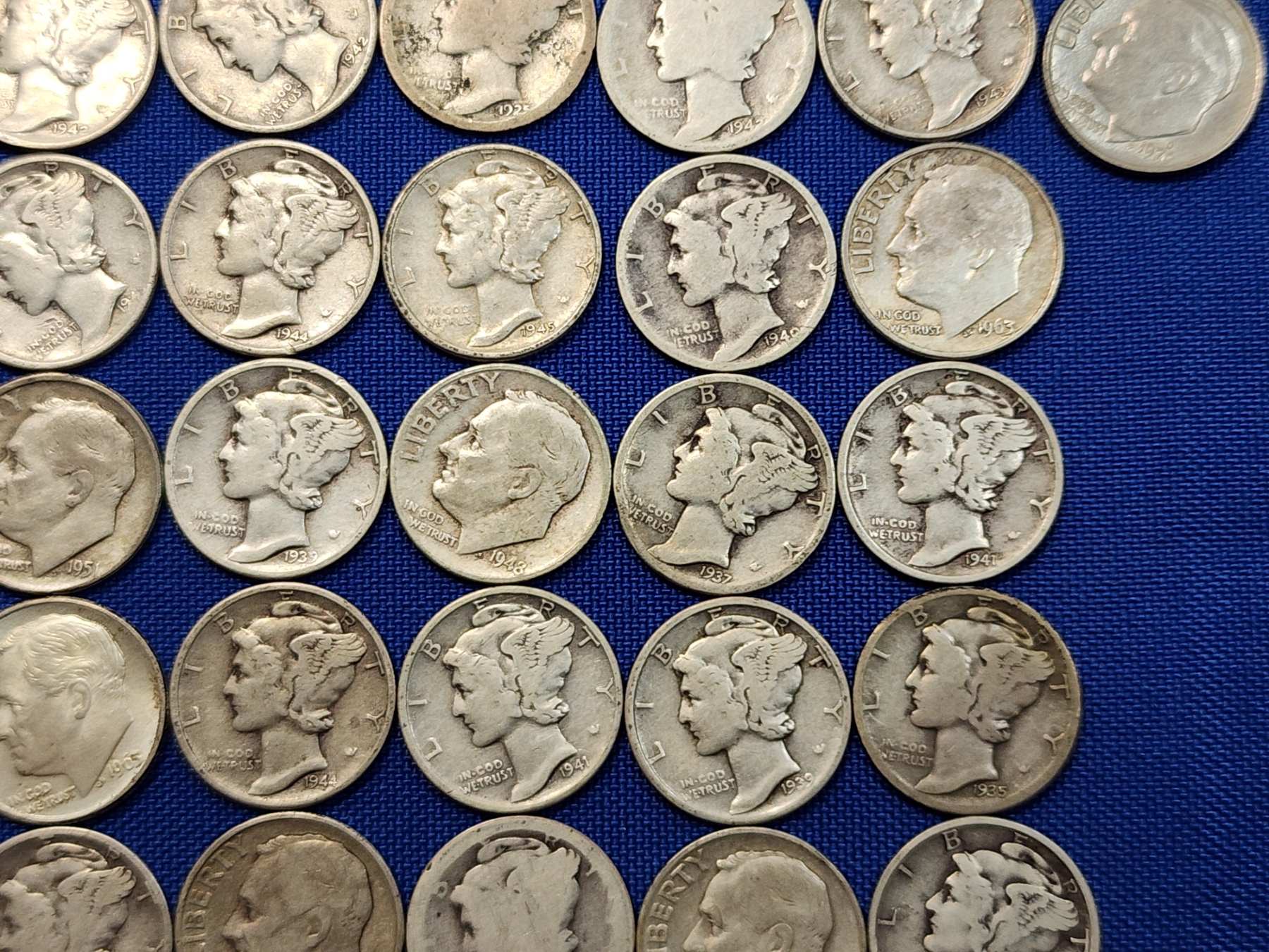 x32 Assorted Year Roosevelt and Mercury Dimes - Mostly Silver - Silver FV: $3.10