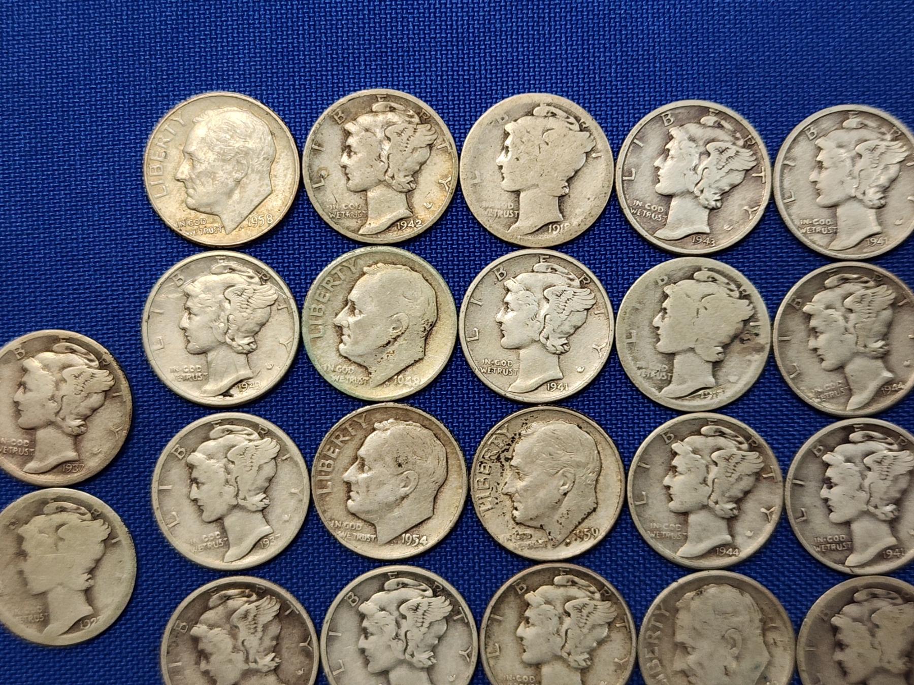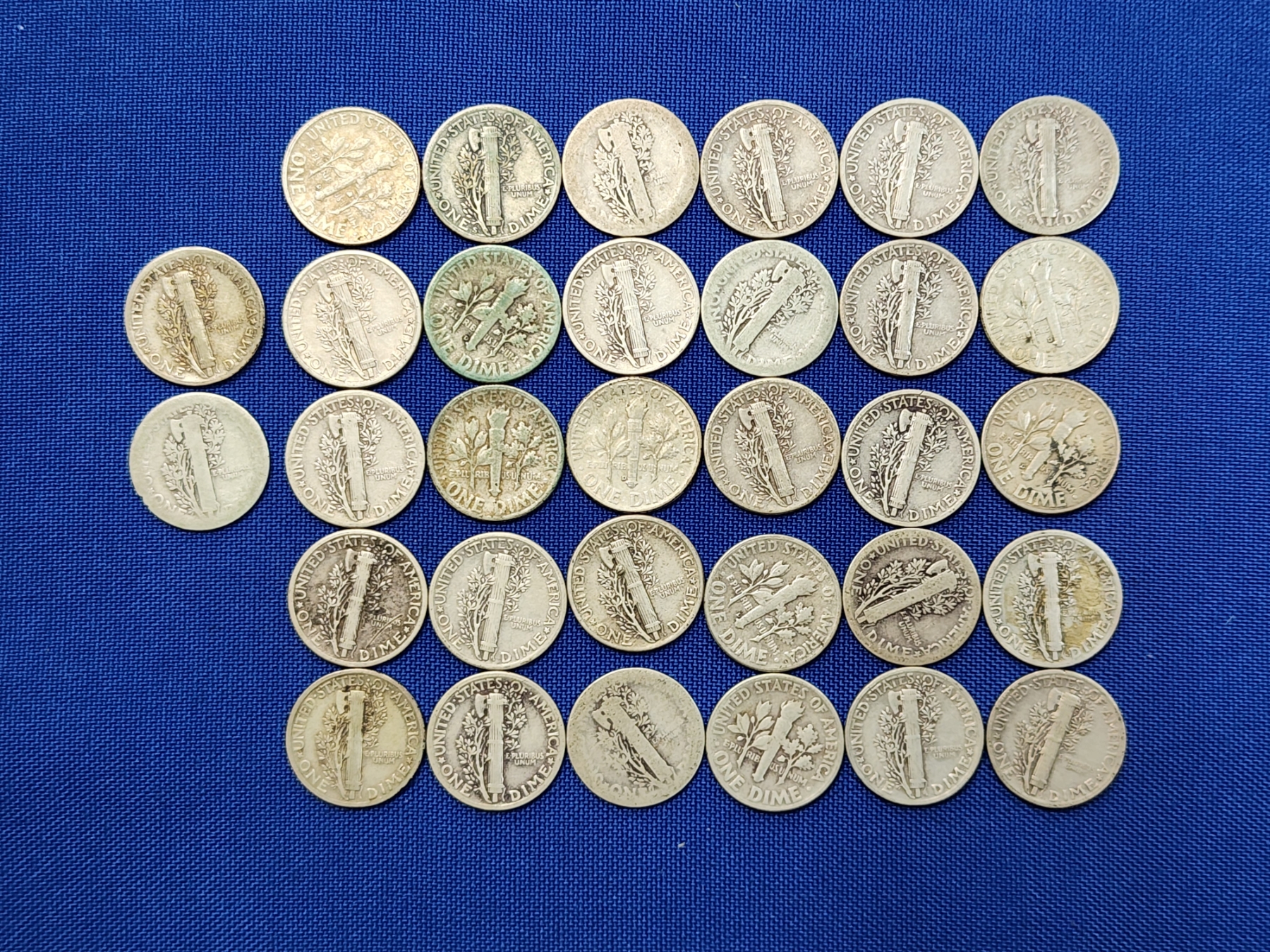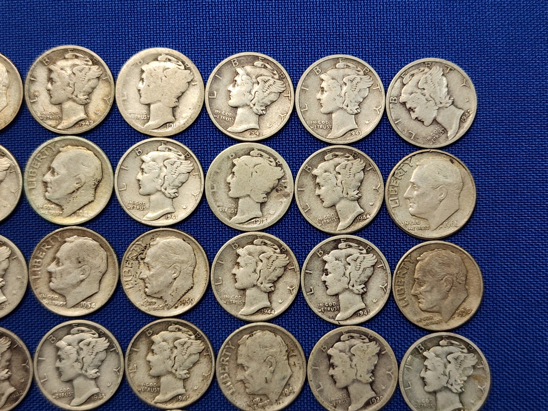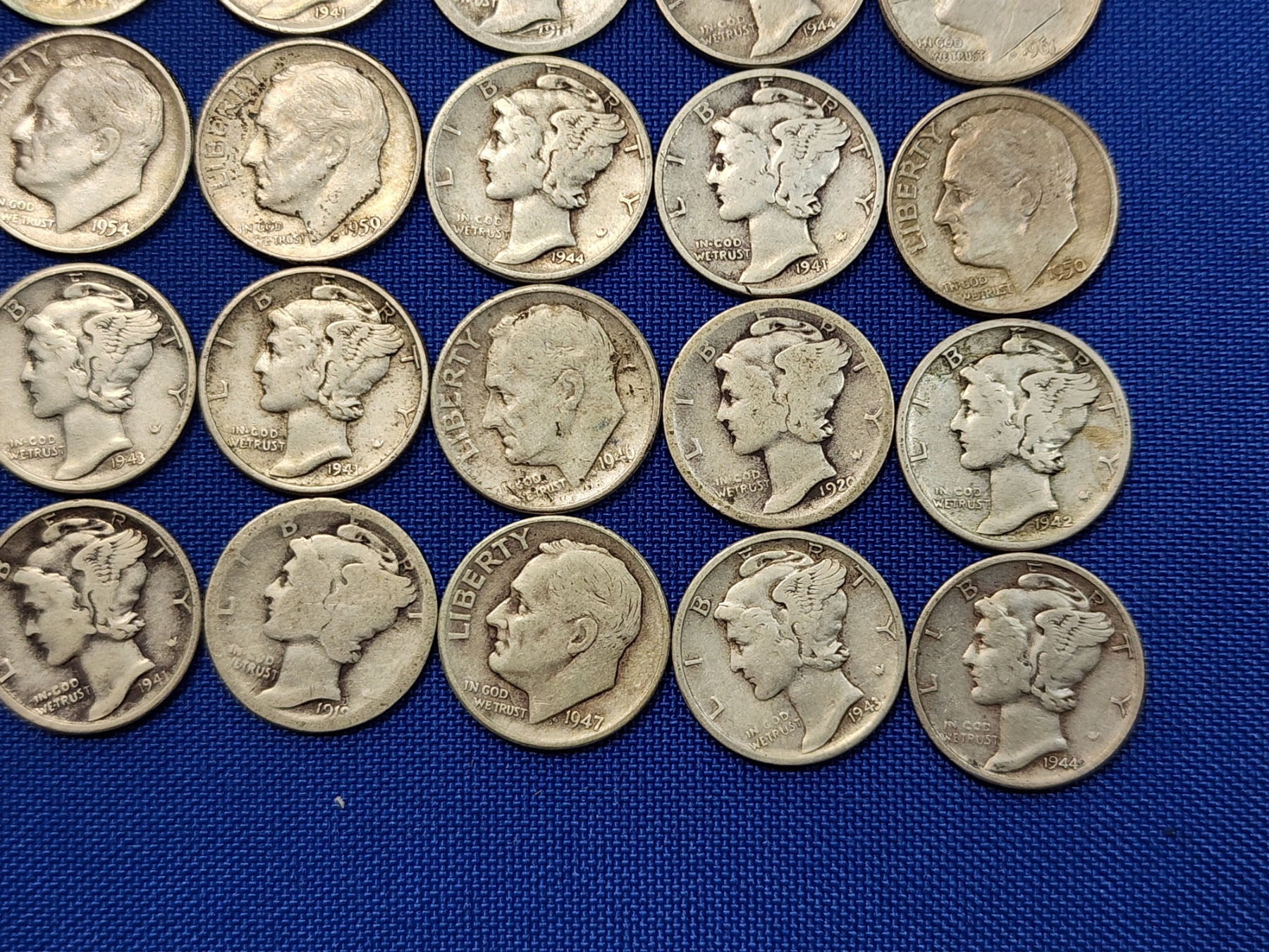 x32 Assorted Year Roosevelt and Mercury Silver Dimes FV: $3.20