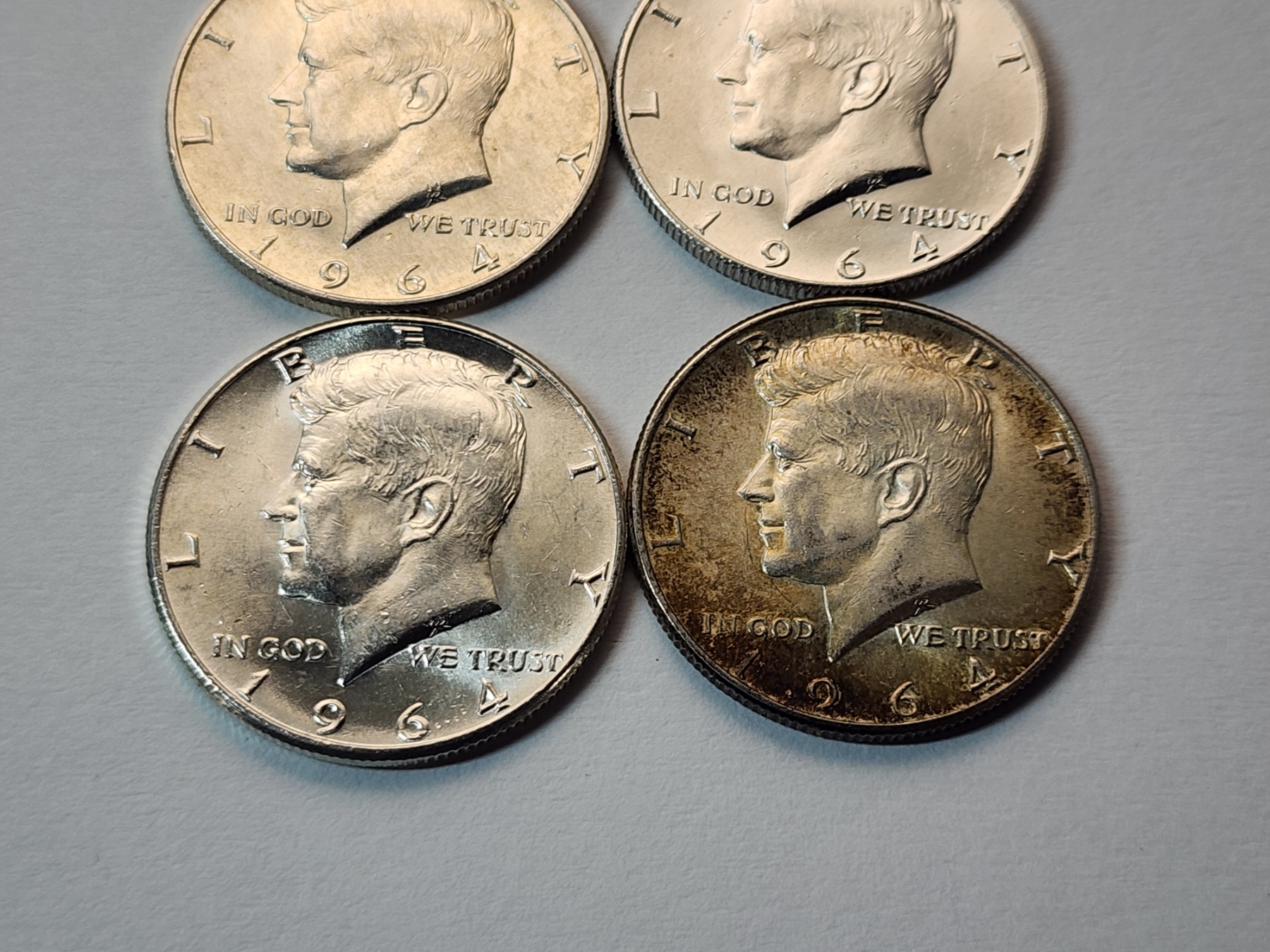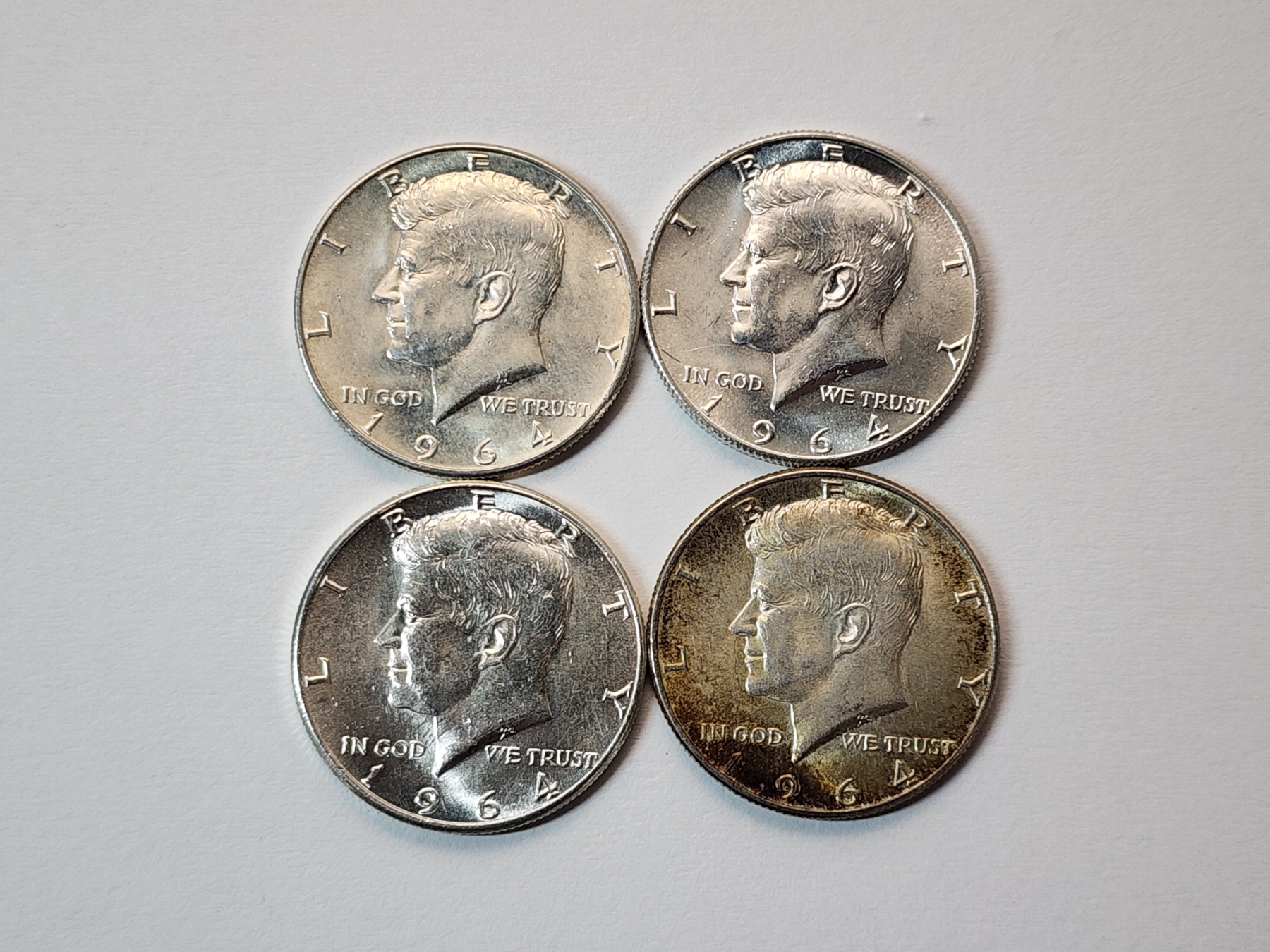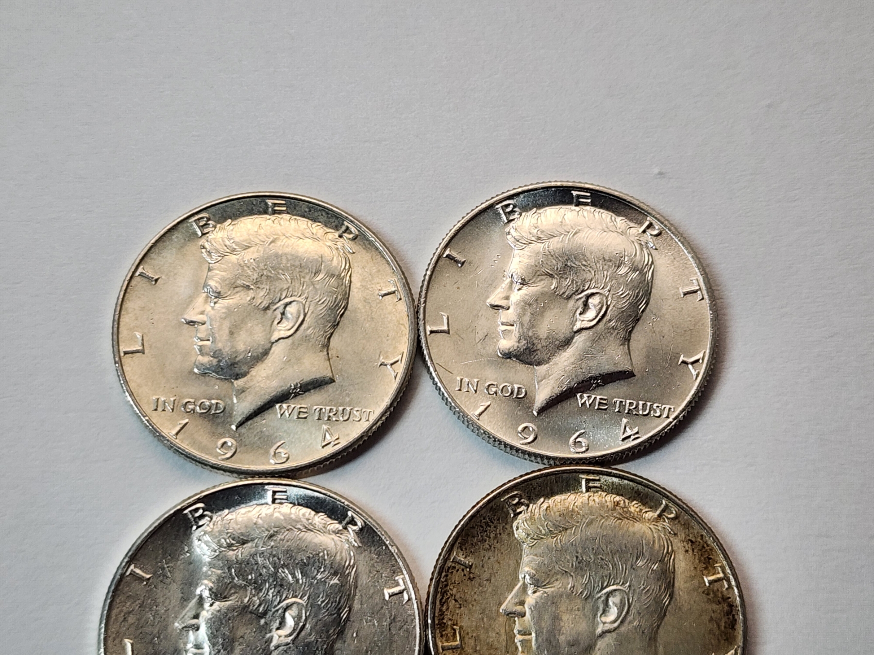 x4 1964 Kennedy Half Dollars 90% Silver Face Value $2.00