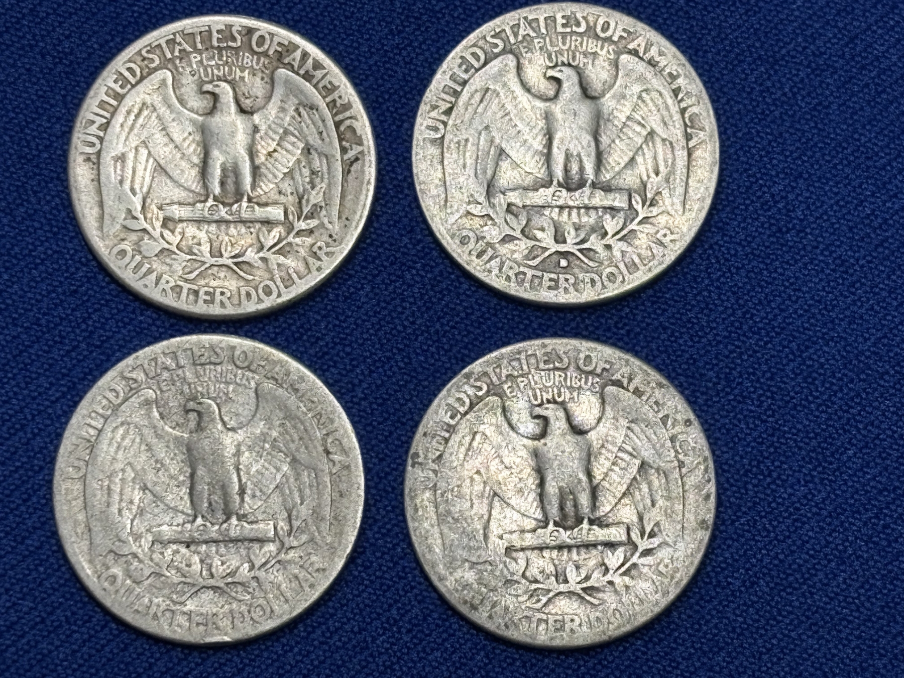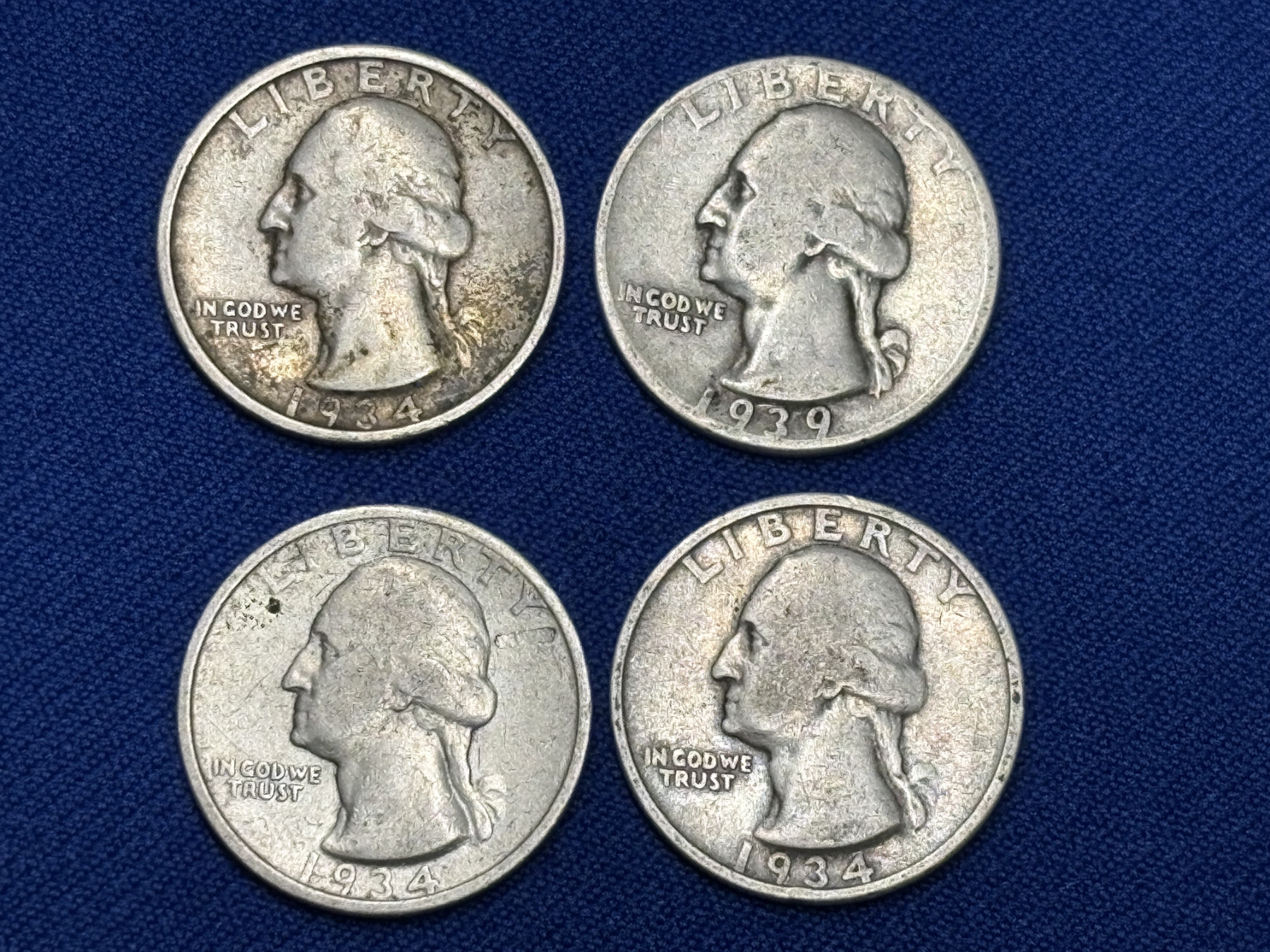 x4 Assorted Years 90% Silver Washington Quarters FV: $1.00