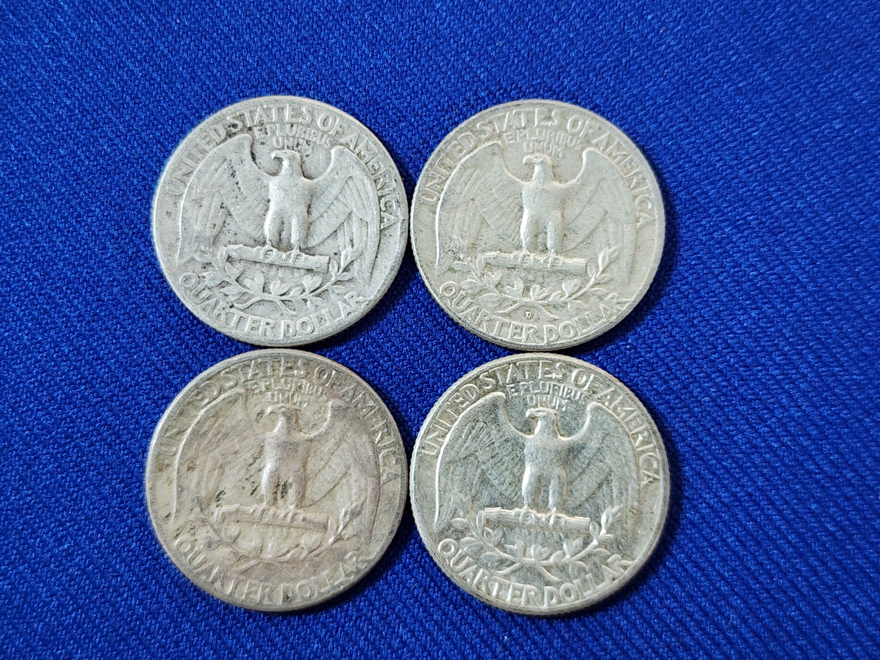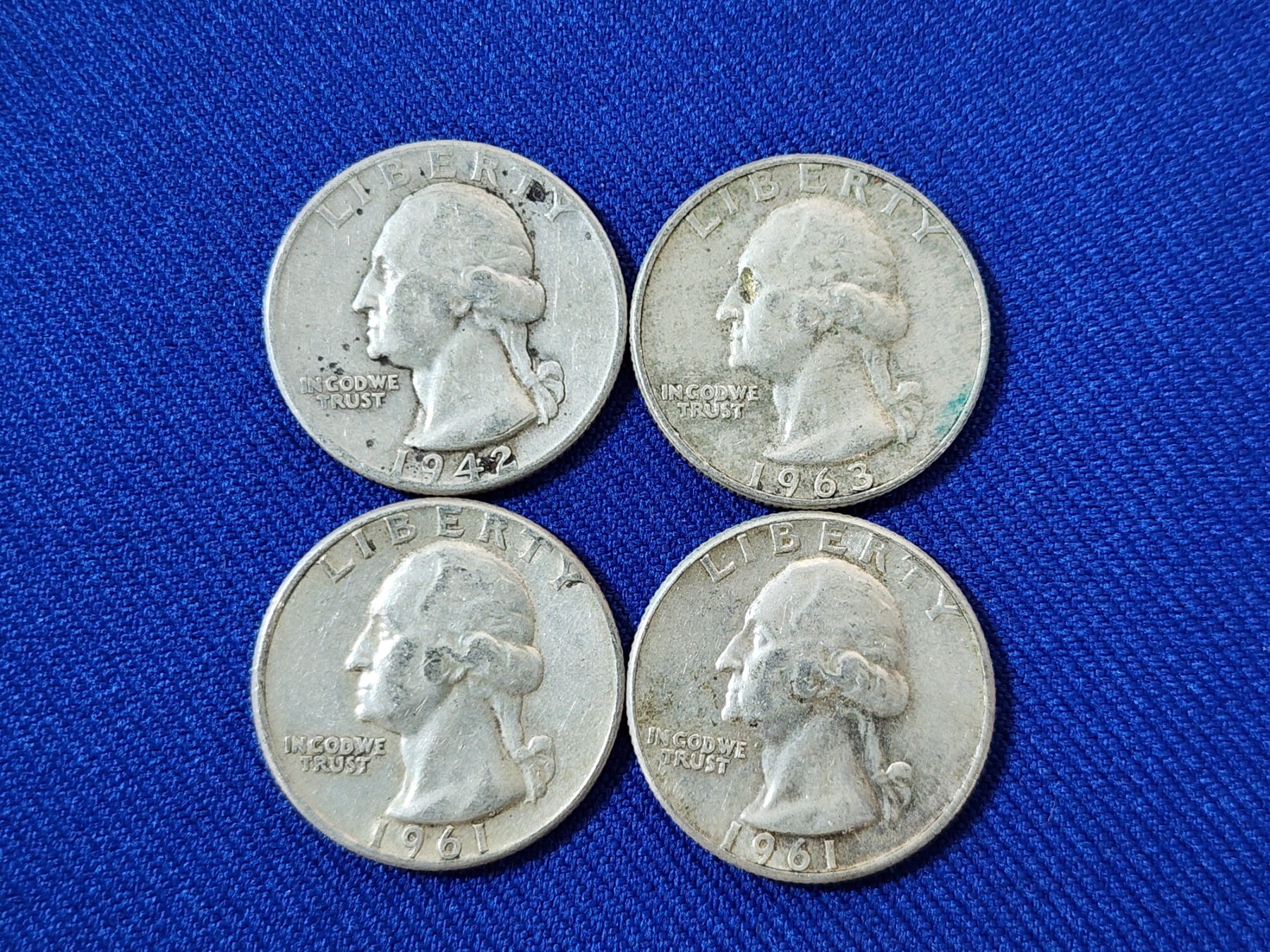 x4 Assorted Years U.S. 90% Silver Washington Quarters FV: $1.00