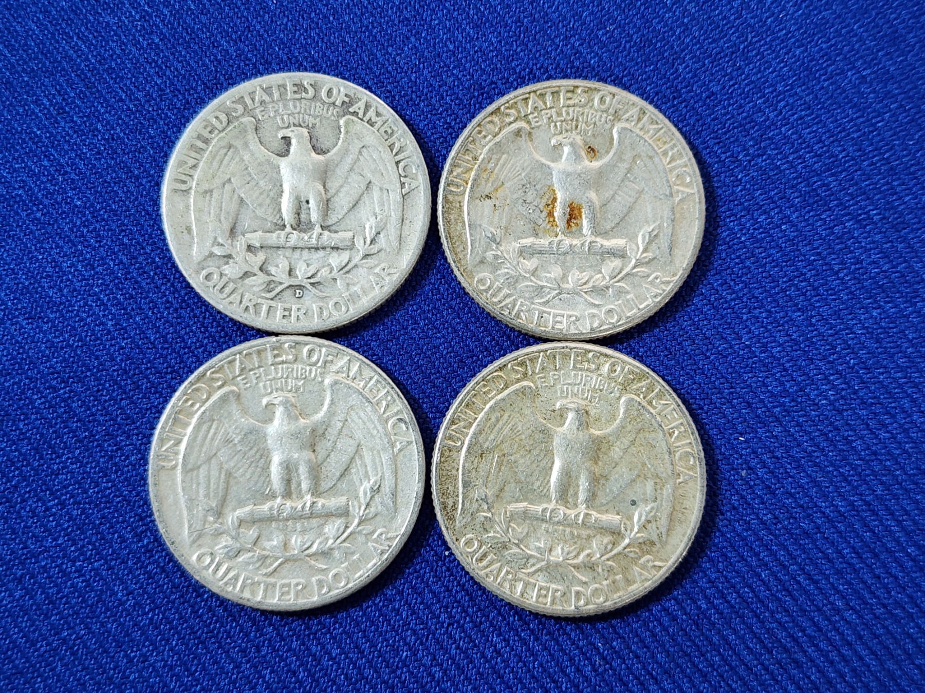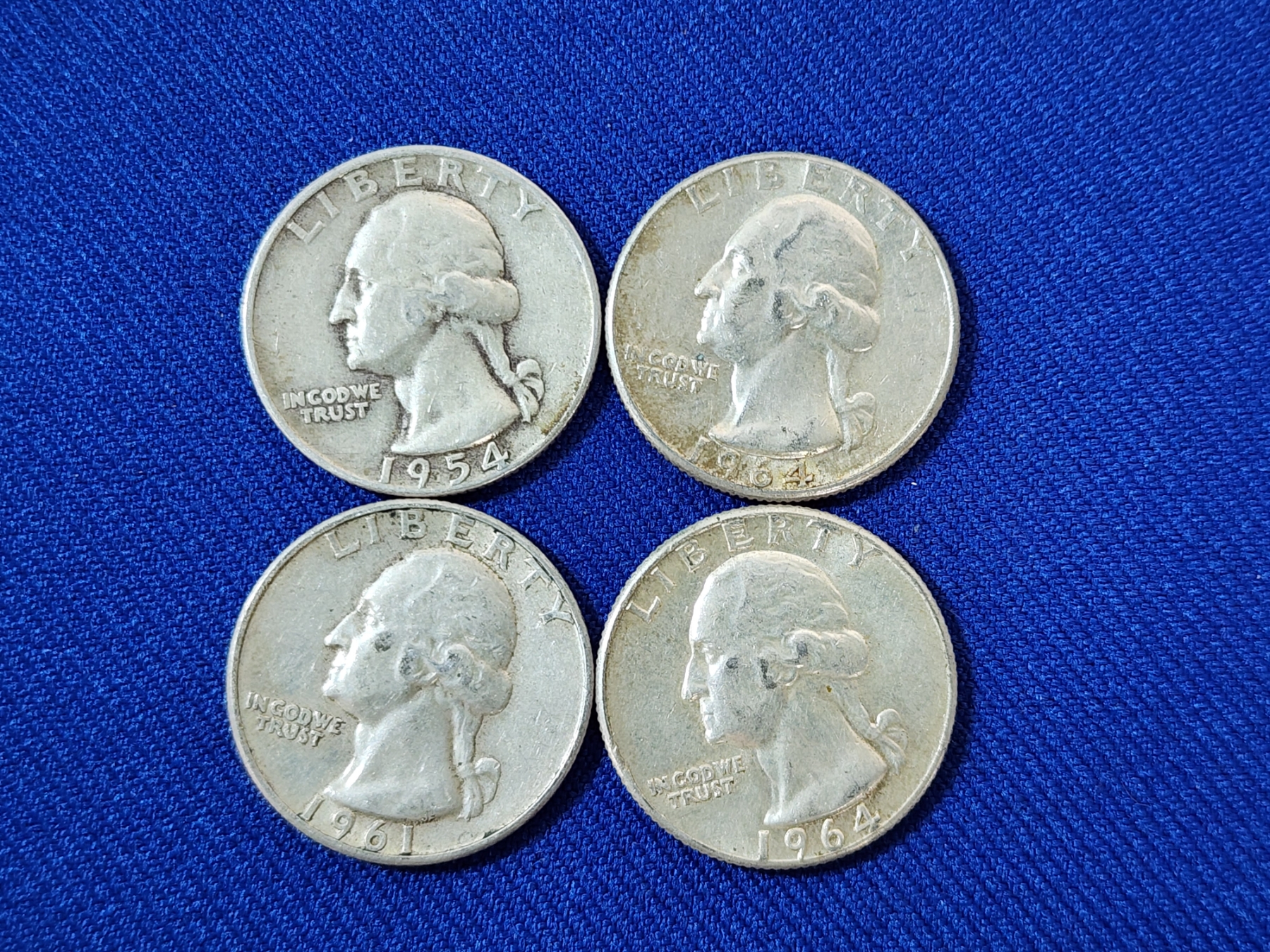 x4 Assorted Years U.S. 90% Silver Washington Quarters FV: $1.00