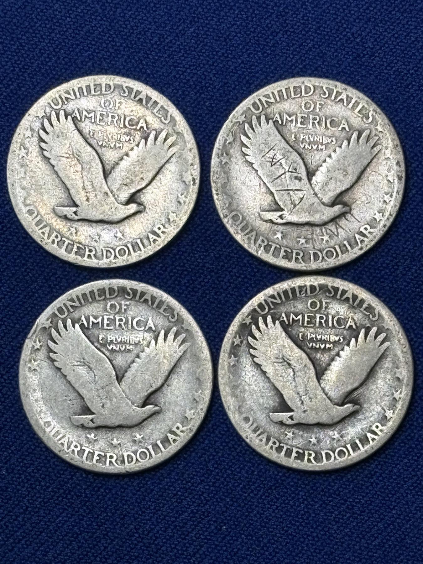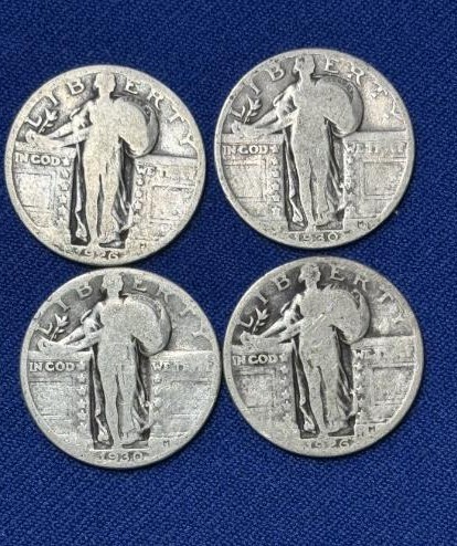 x4 Assorted Years United States Standing Liberty 90% Silver Quarters FV: $1.00