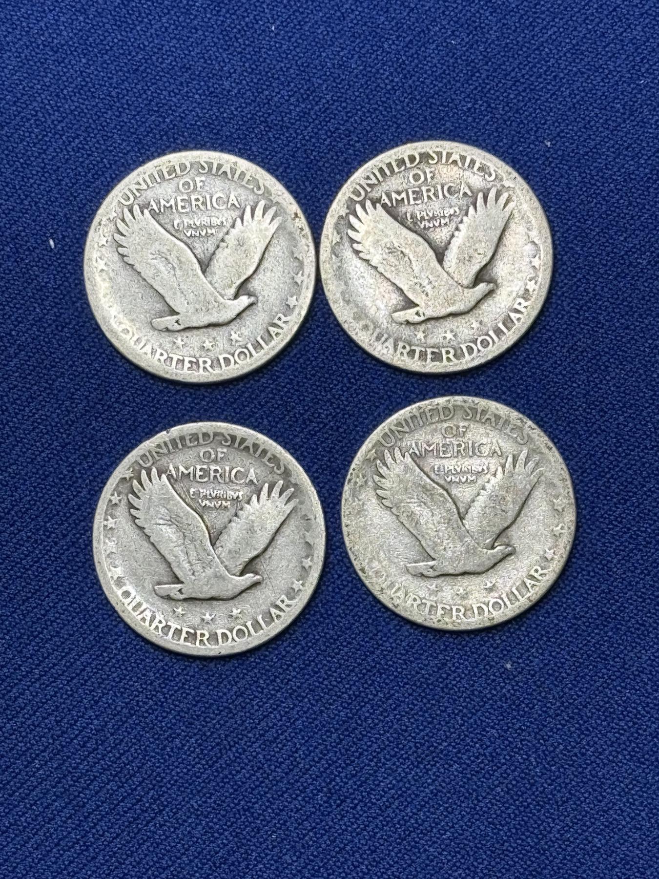 x4 Assorted Years United States Standing Liberty 90% Silver Quarters FV: $1.00