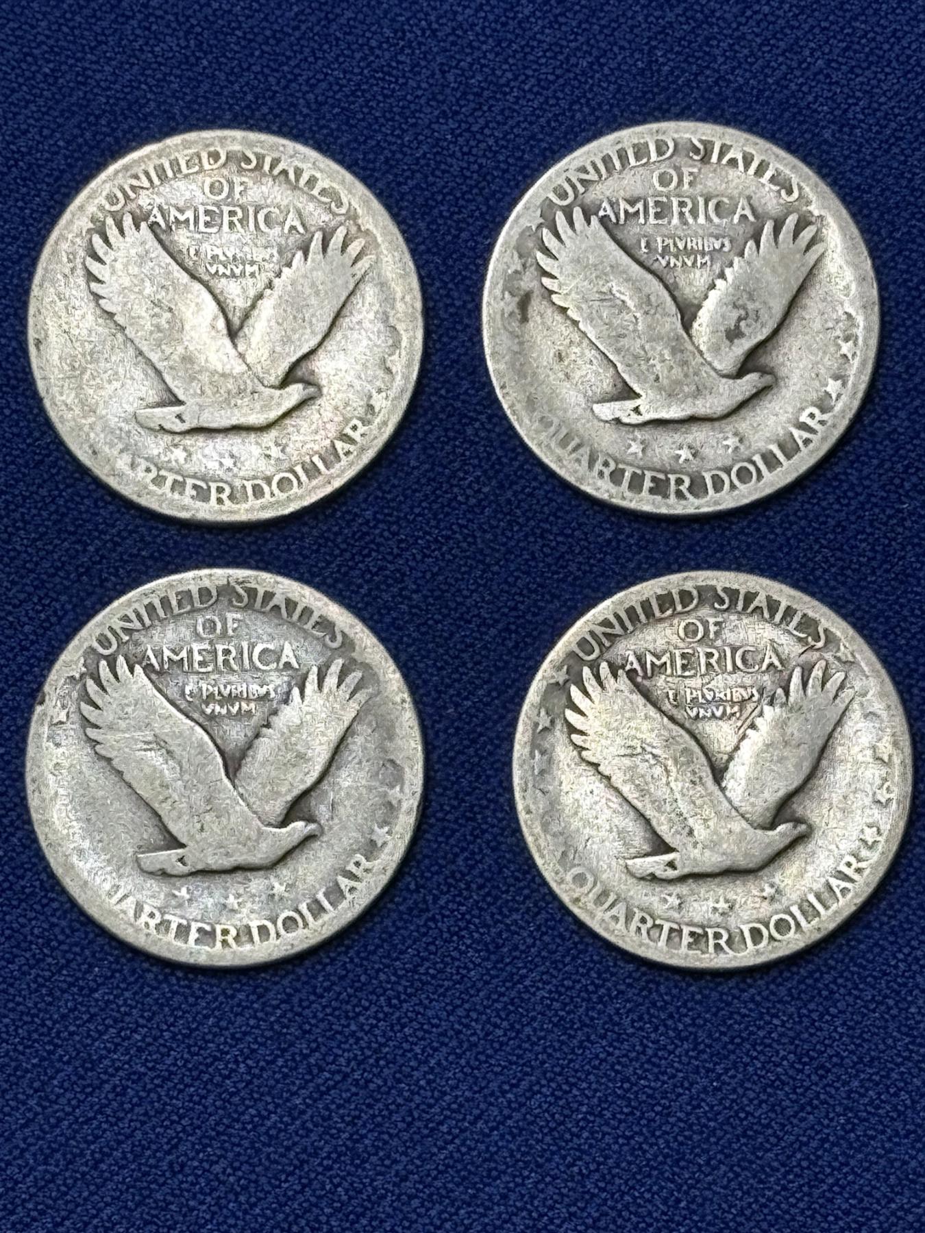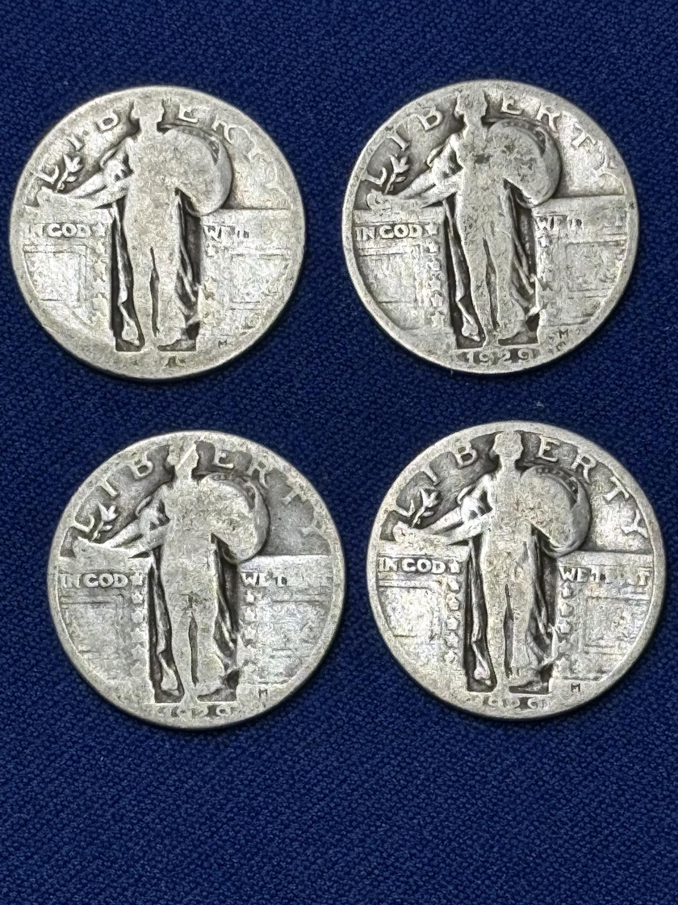 x4 Assorted Years United States Standing Liberty 90% Silver Quarters FV: $1.00