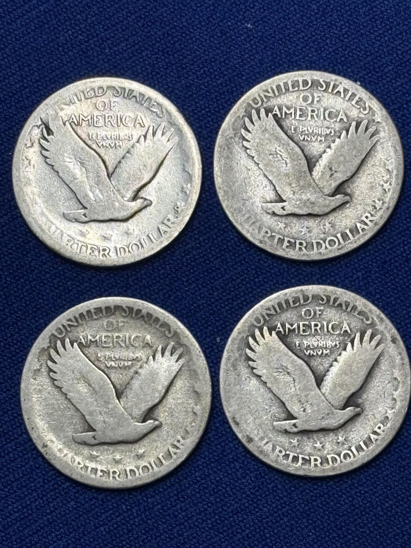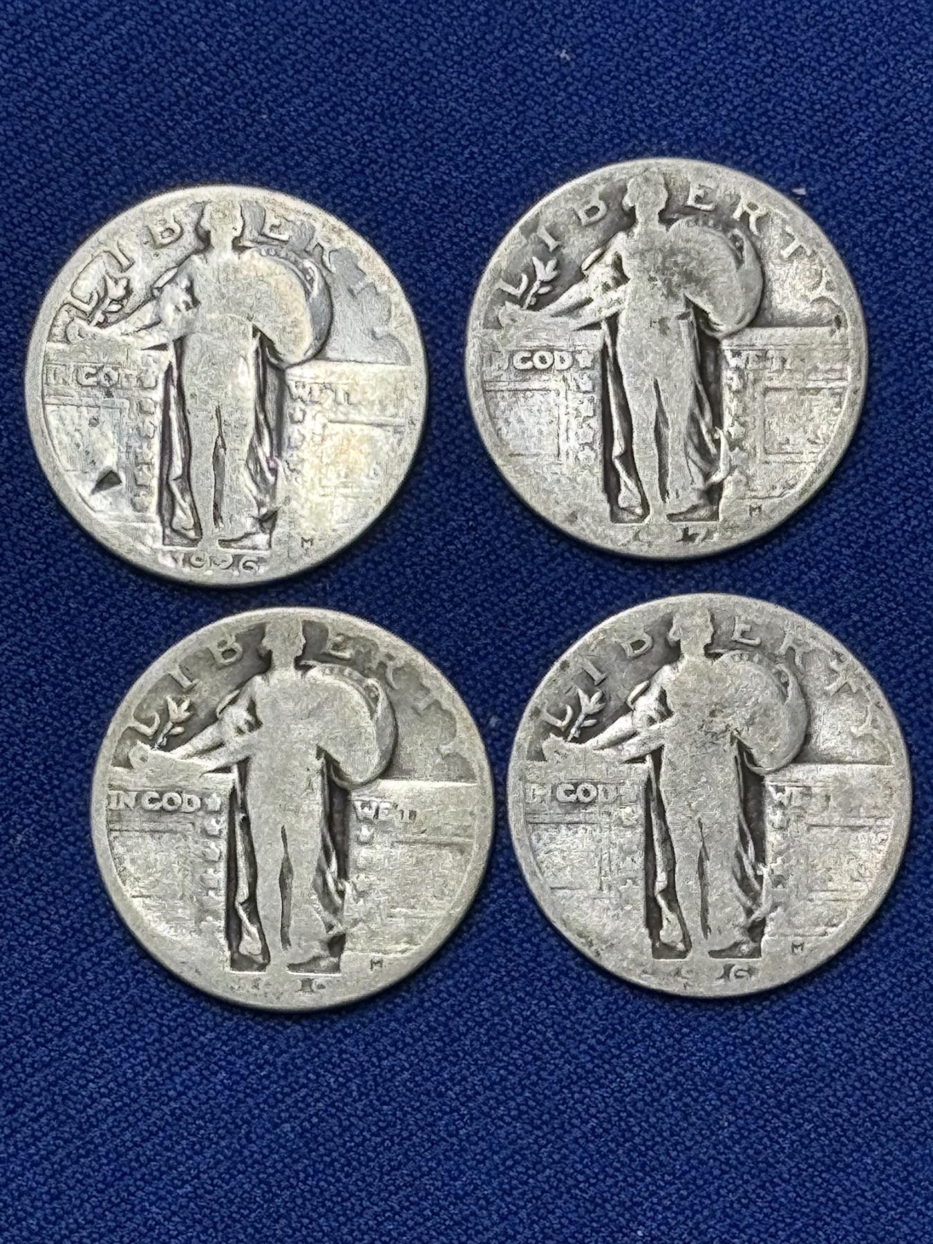 x4 Assorted Years United States Standing Liberty 90% Silver Quarters FV: $1.00