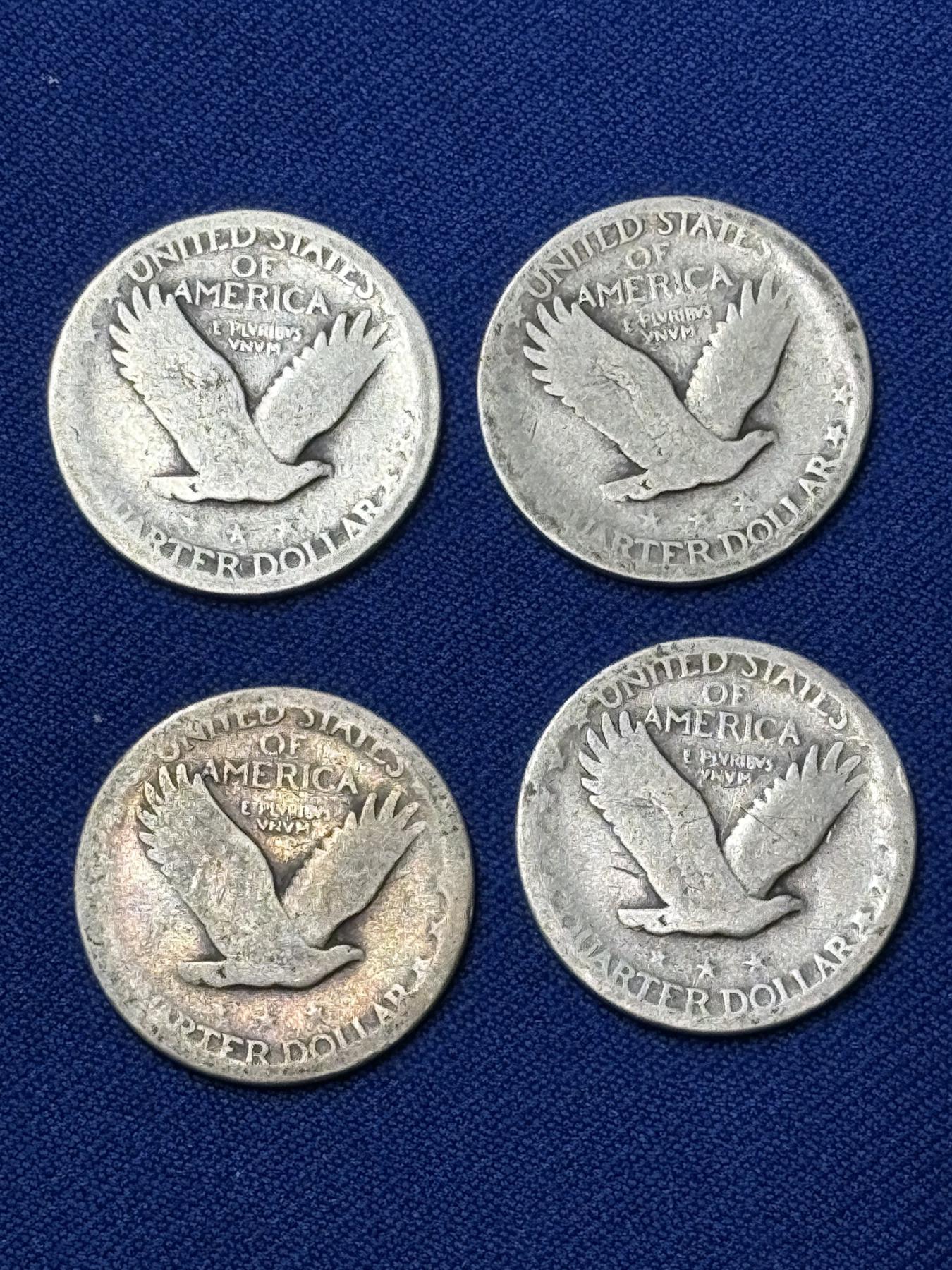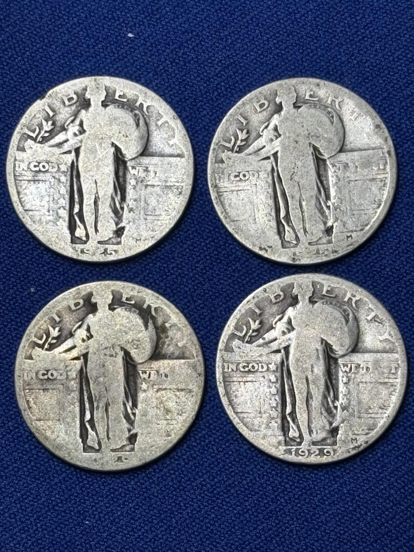 x4 Assorted Years United States Standing Liberty 90% Silver Quarters FV: $1.00