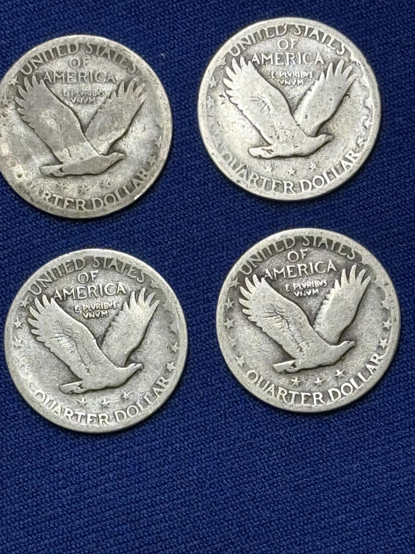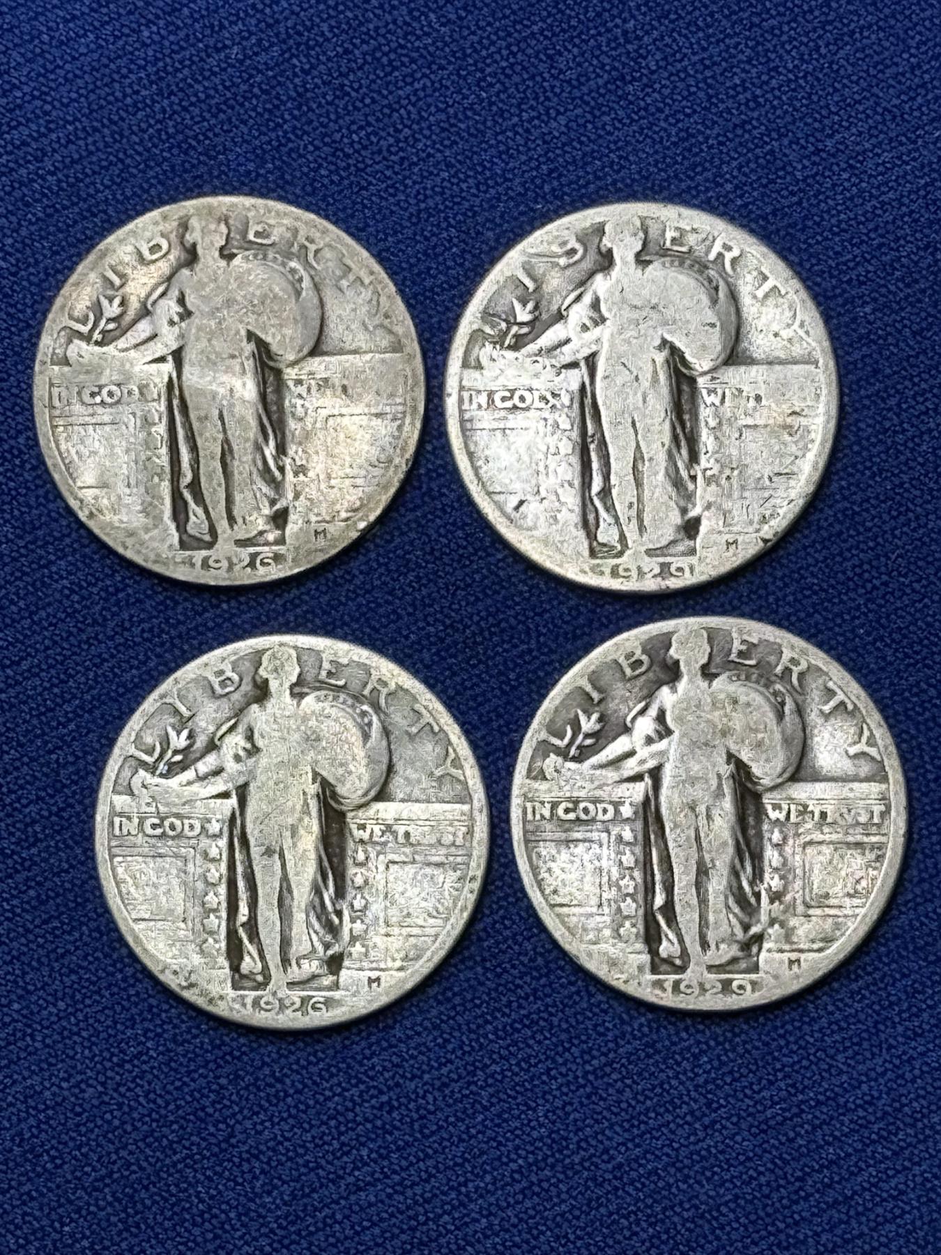 x4 Assorted Years United States Standing Liberty 90% Silver Quarters FV: $1.00