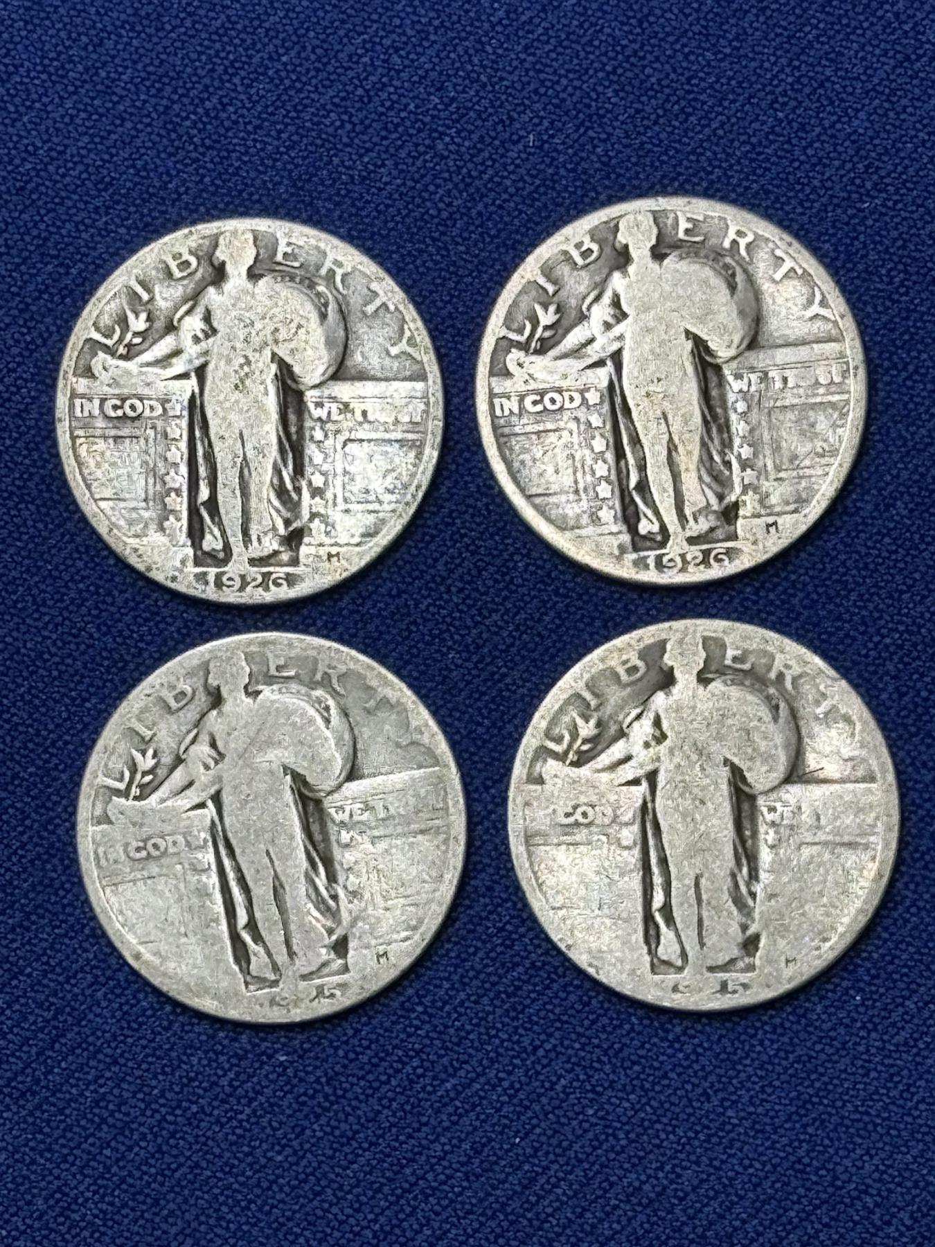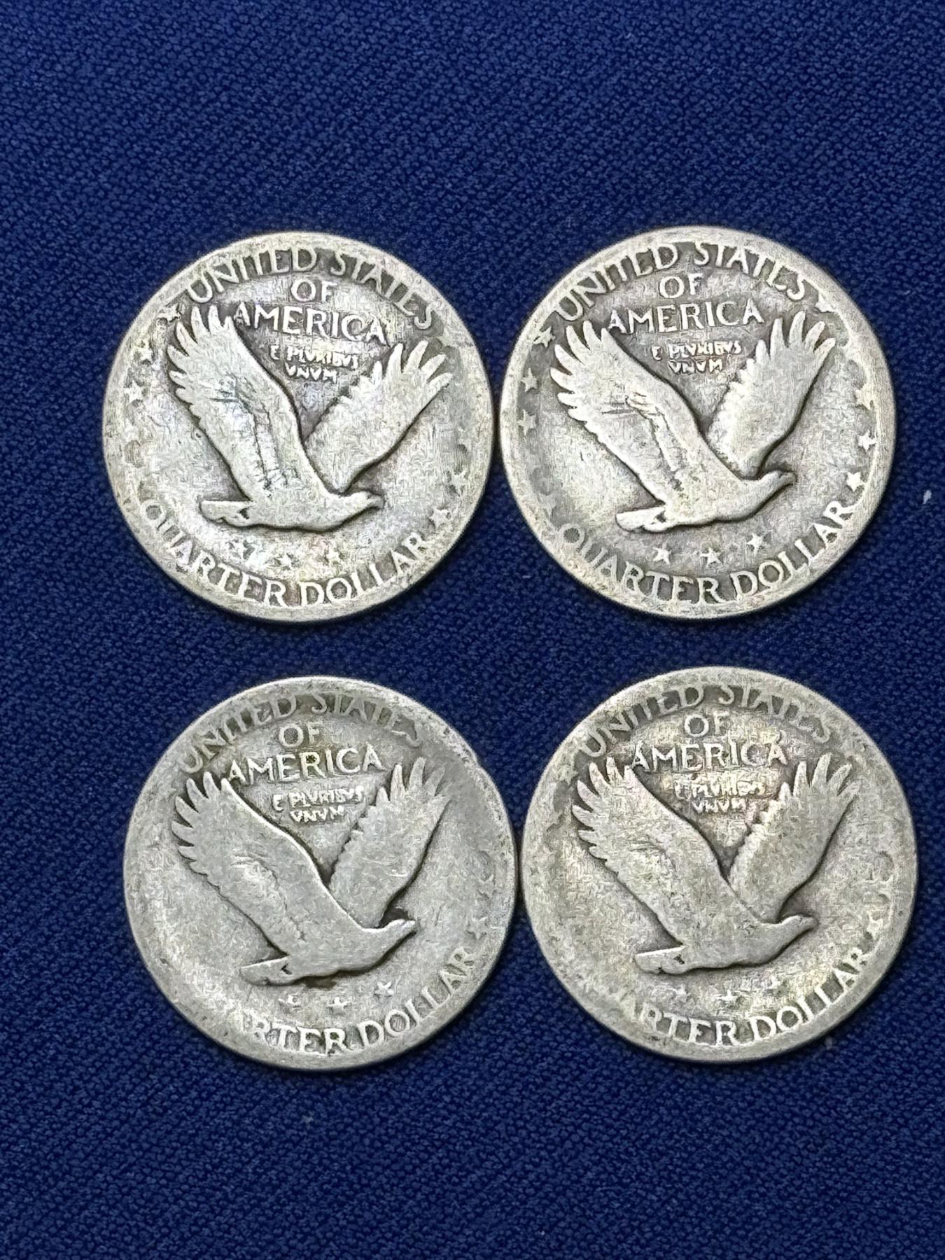 x4 Assorted Years United States Standing Liberty 90% Silver Quarters FV: $1.00