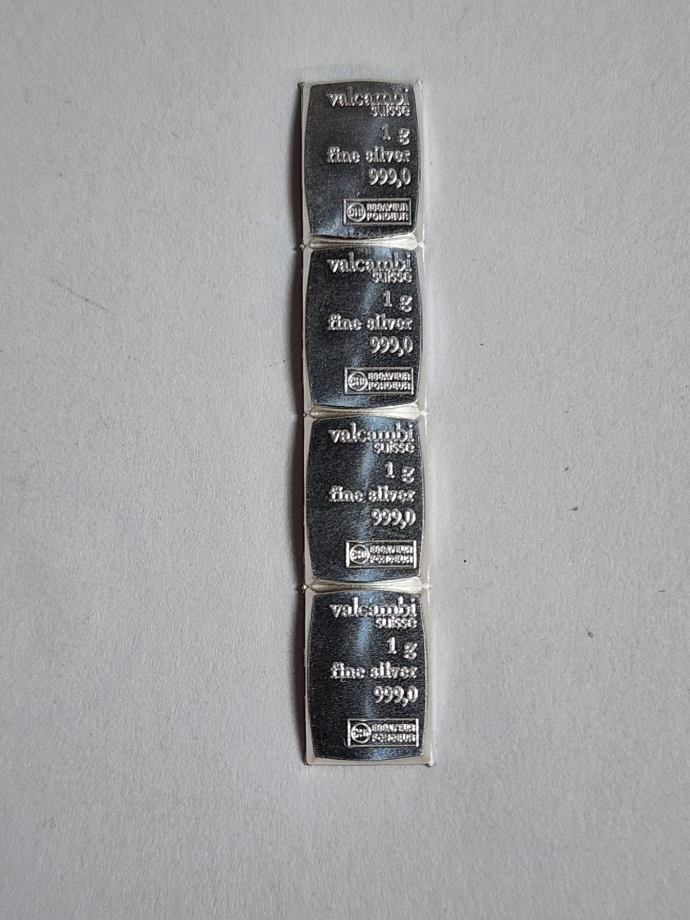 x4 Valcambi Suisse 1 Gram .999 Fine Silver Bars - 4 Grams Total - Mint Condition