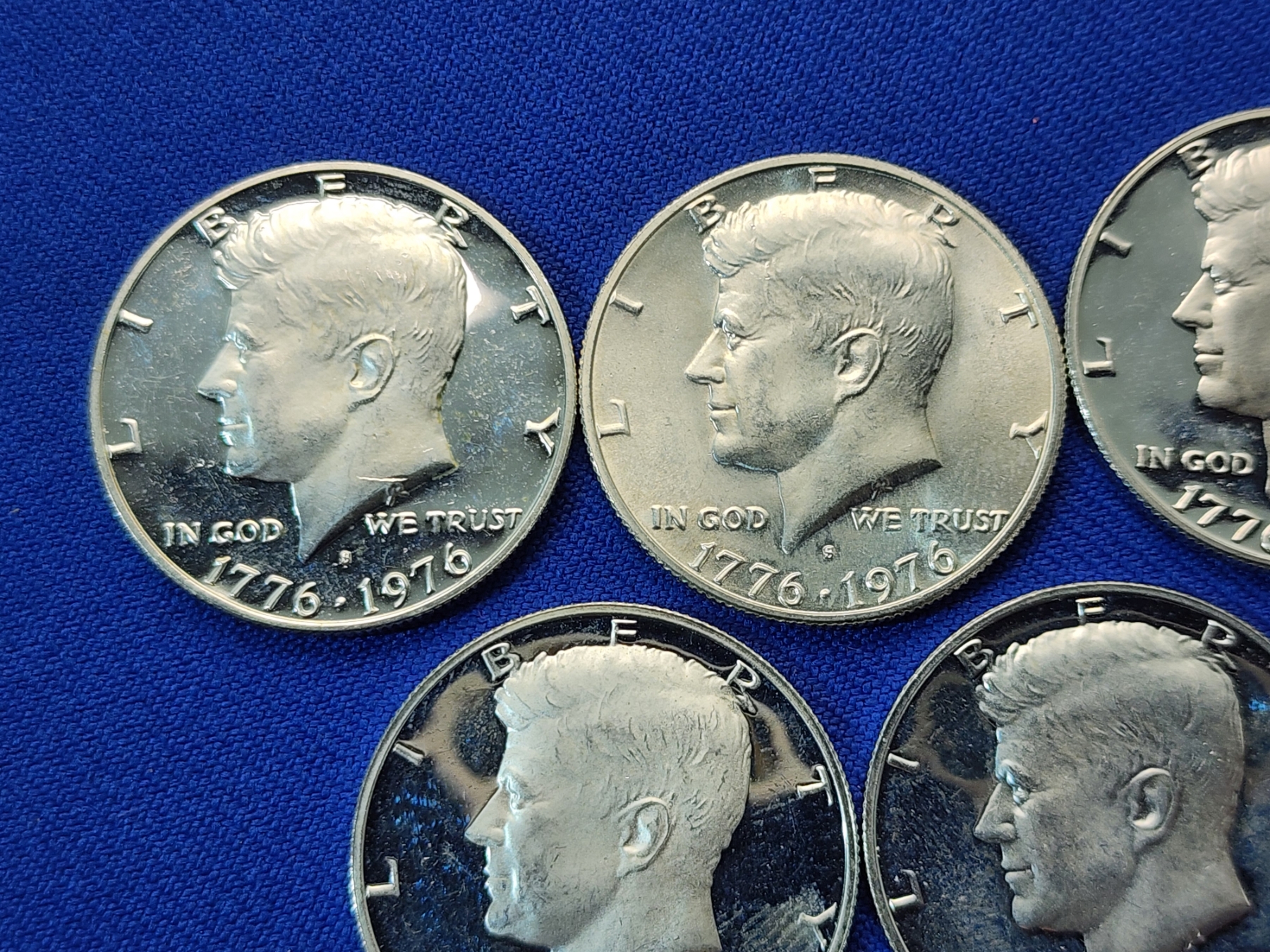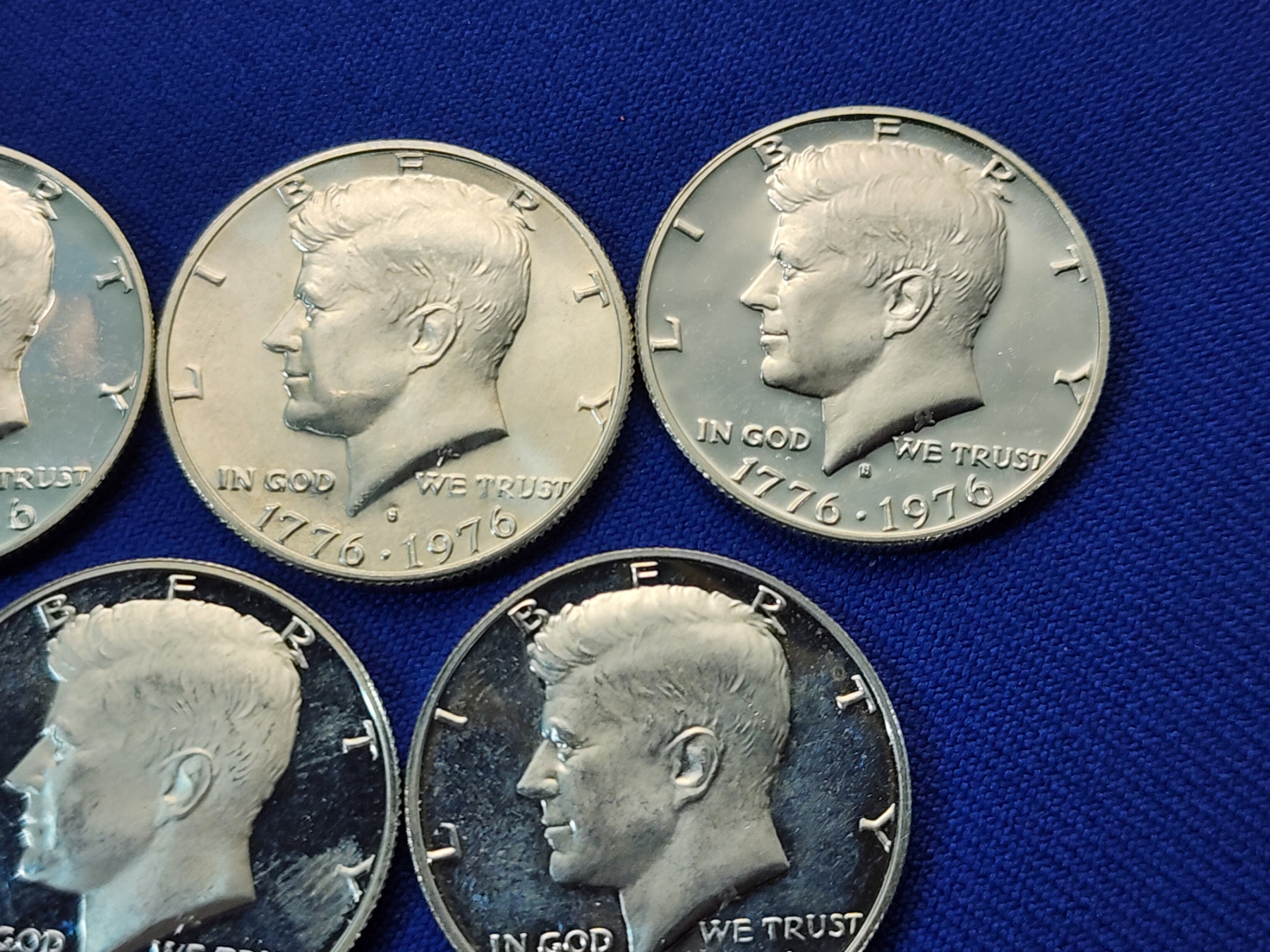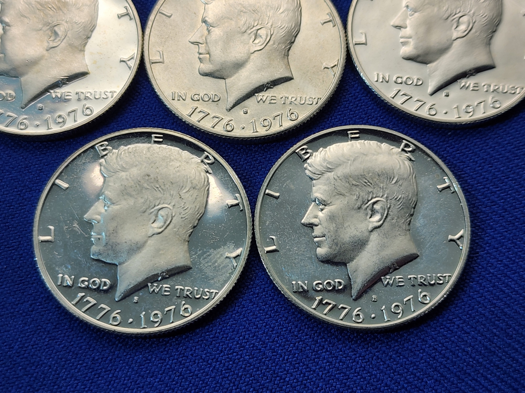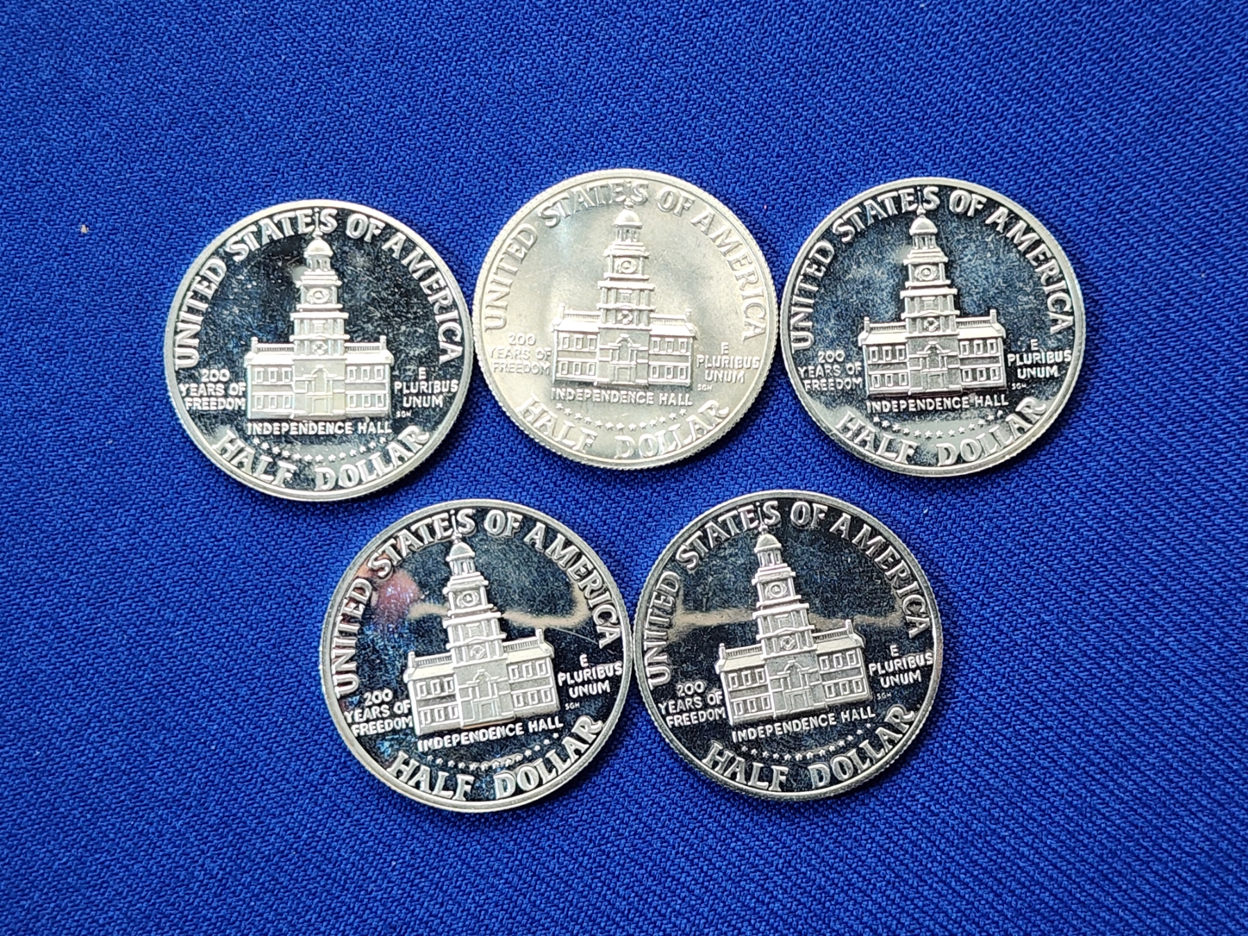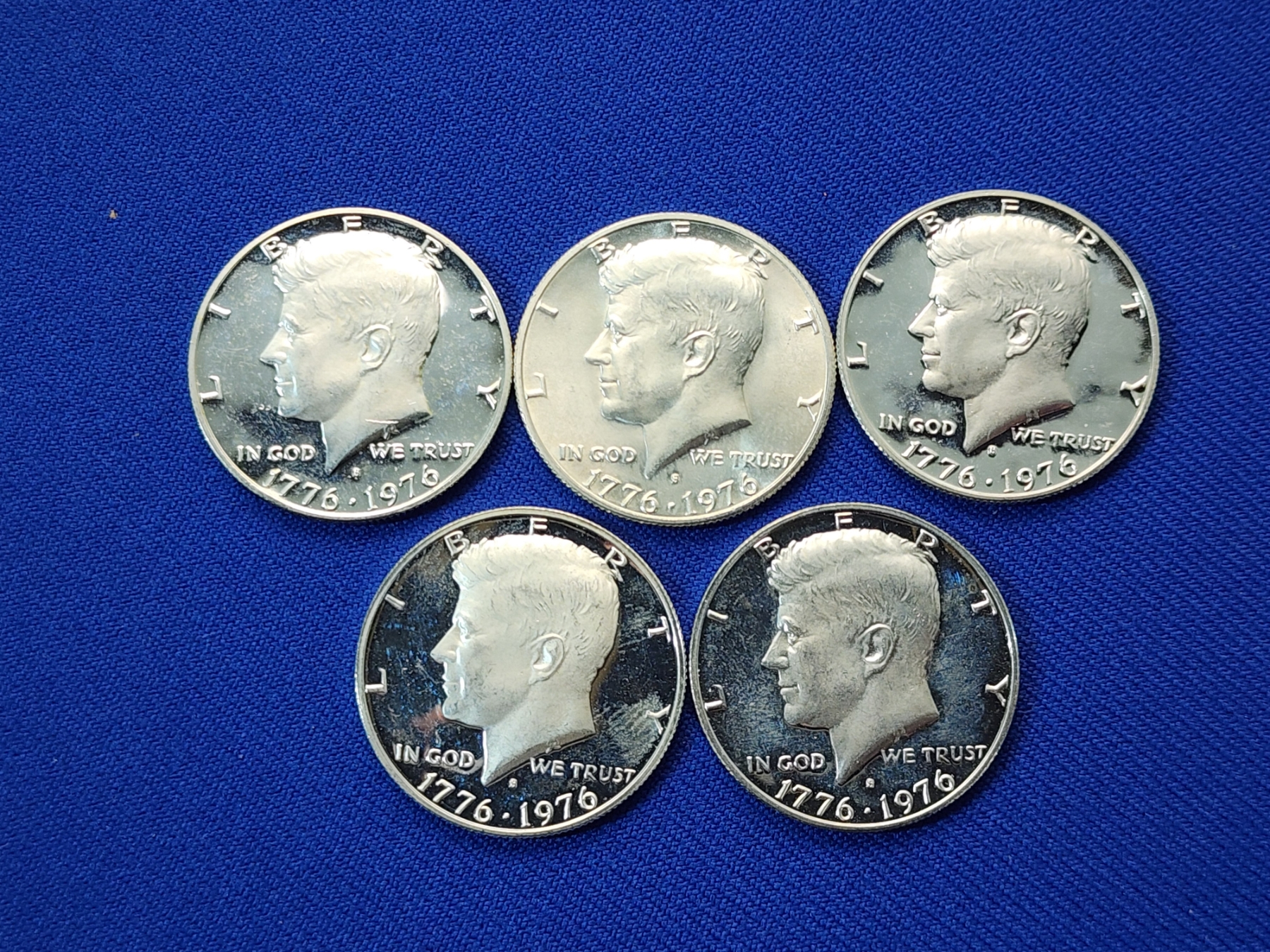 x5 1776-1976 Kennedy Bicentennial Half Dollars 40% Silver Face Value $2.50