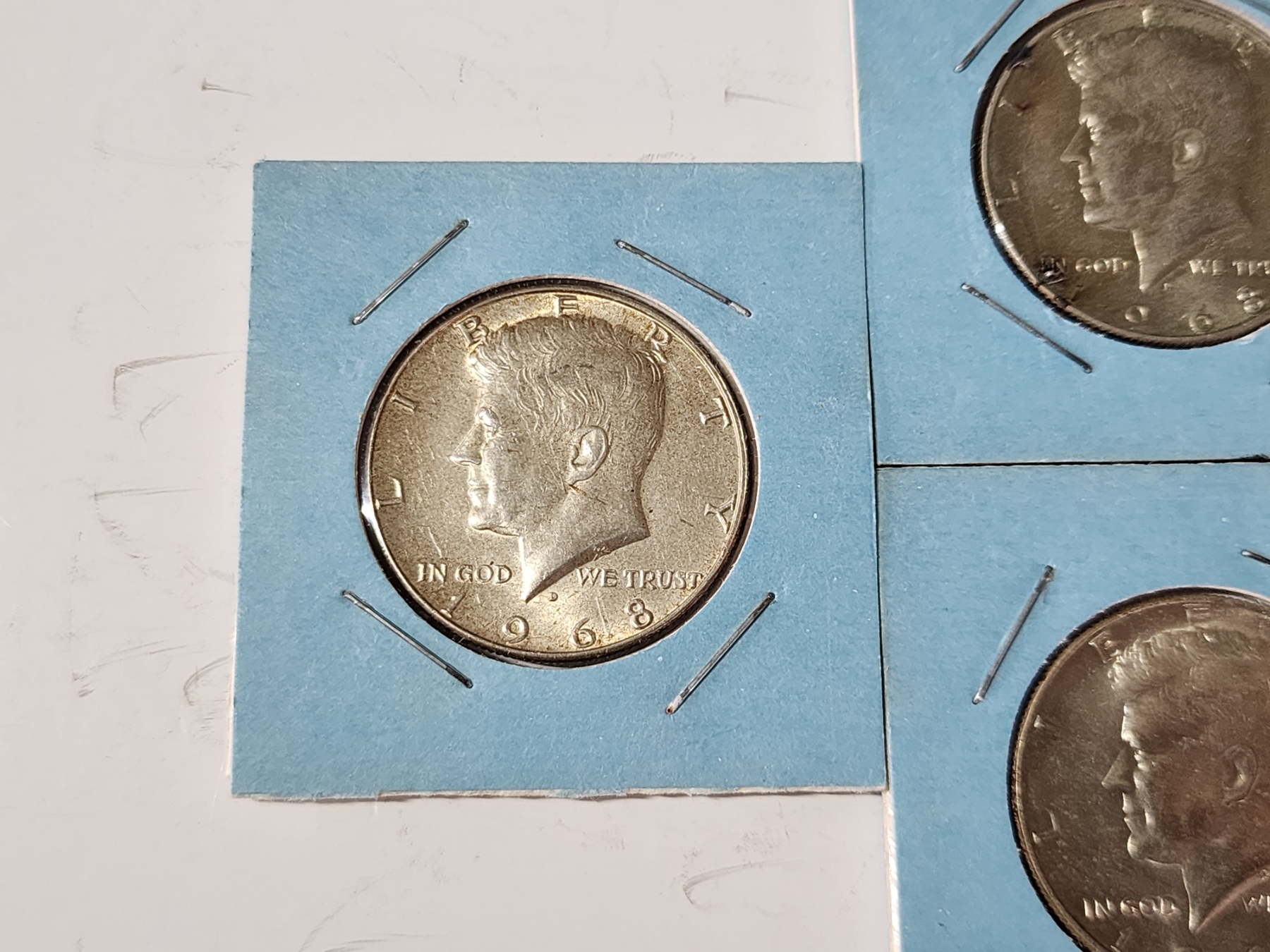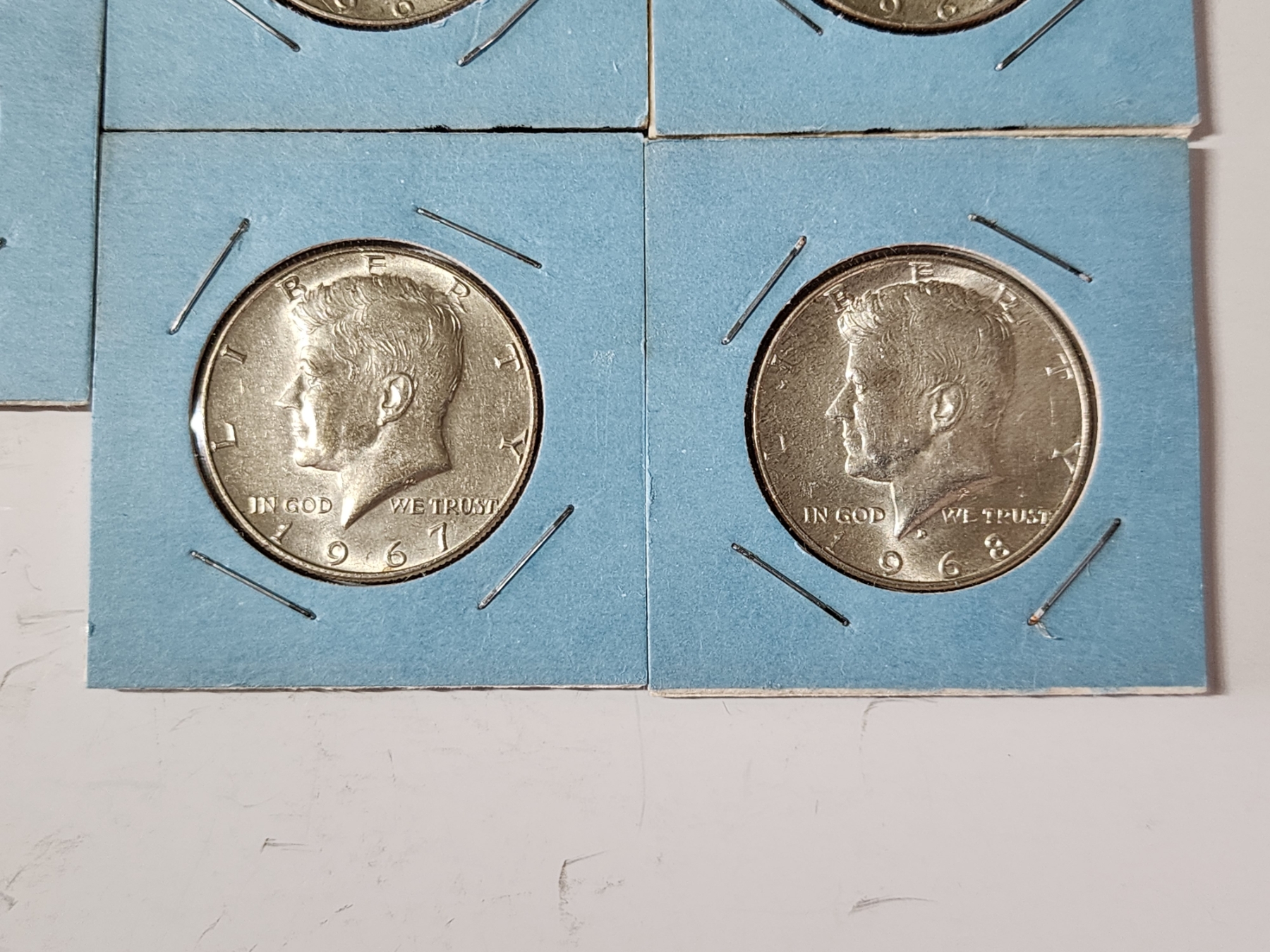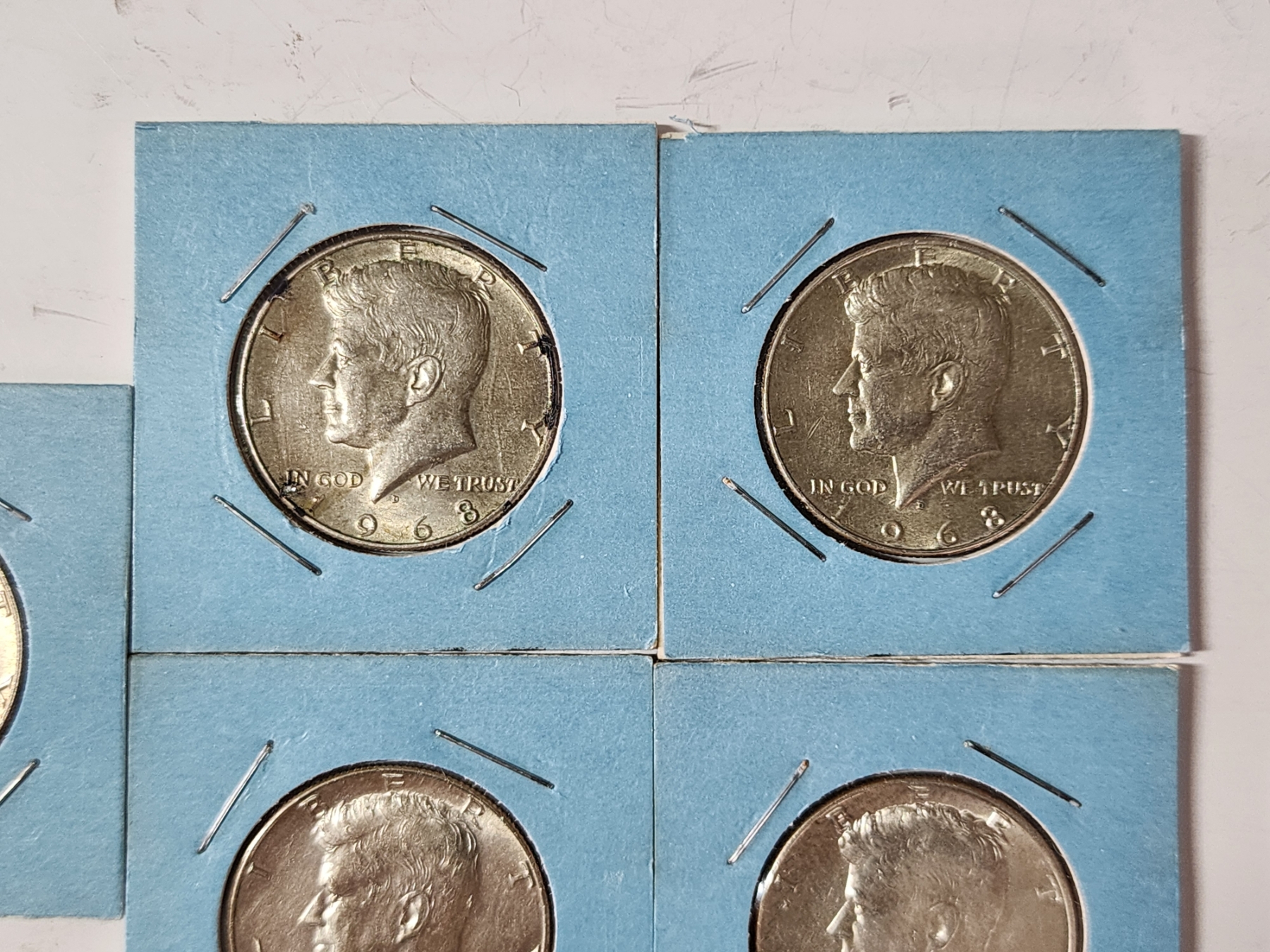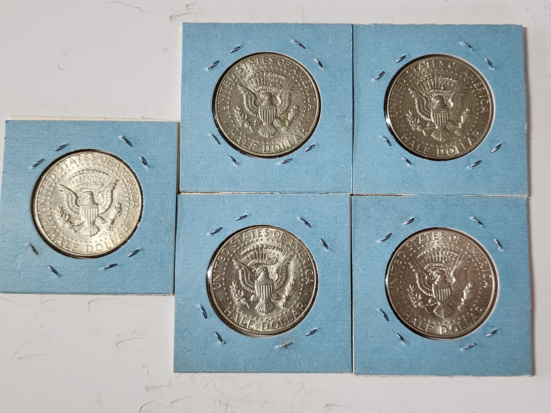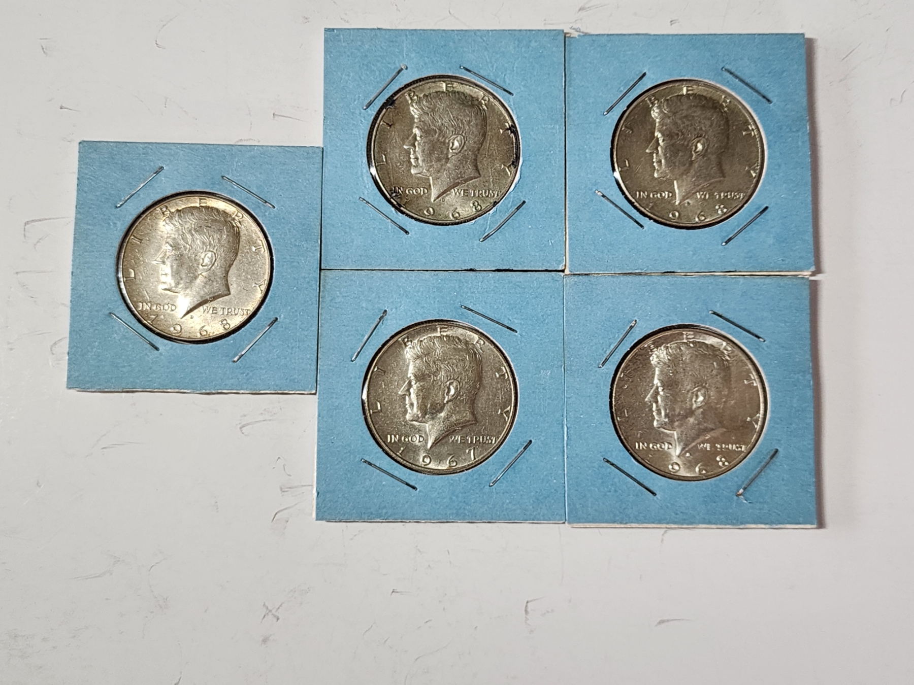 x5 Assorted Years 40% Silver Kennedy Half Dollars FV: $2.50