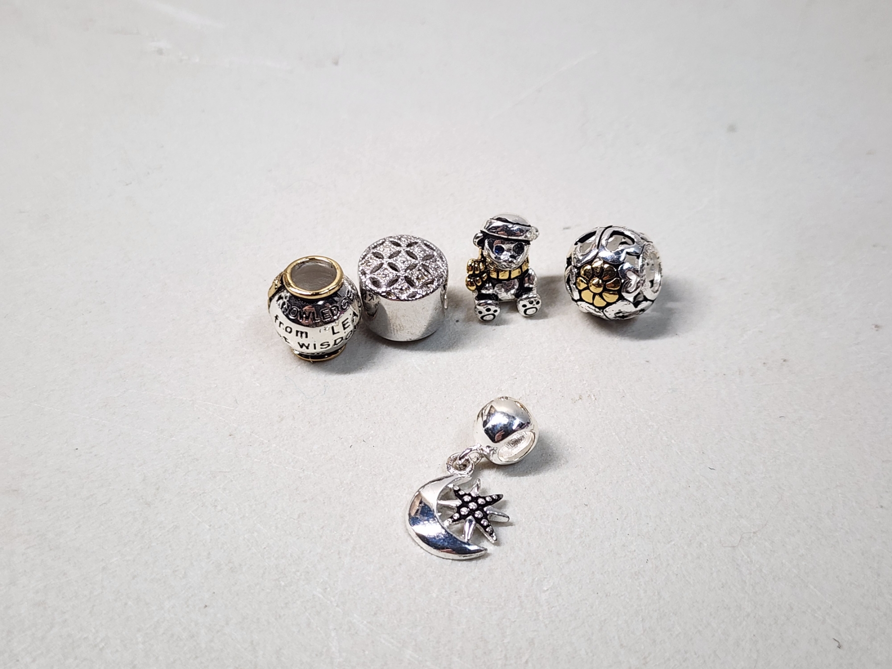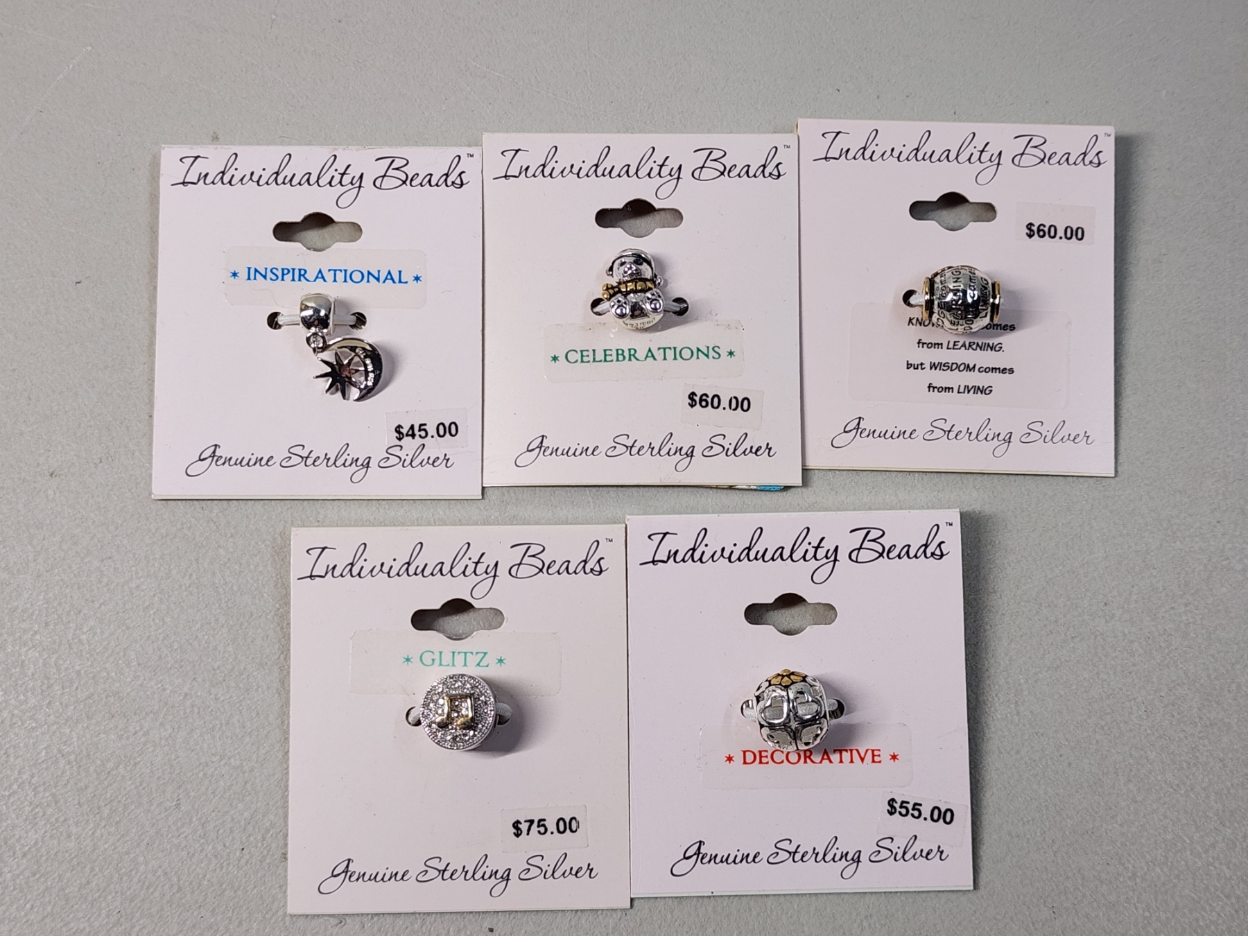 x5 Individuality Beads Sterling Silver Bracelet Charms Total Weight 11.1g