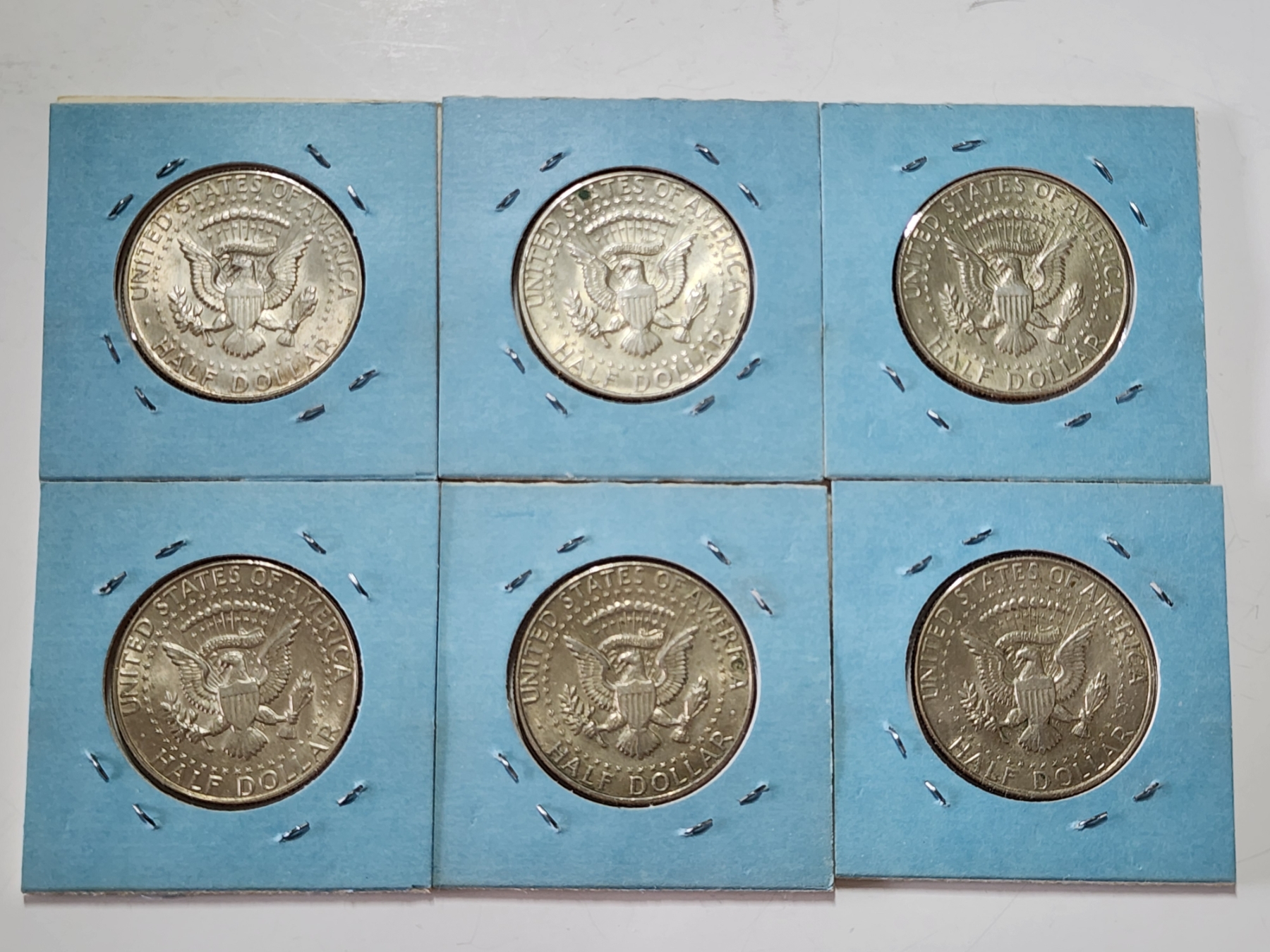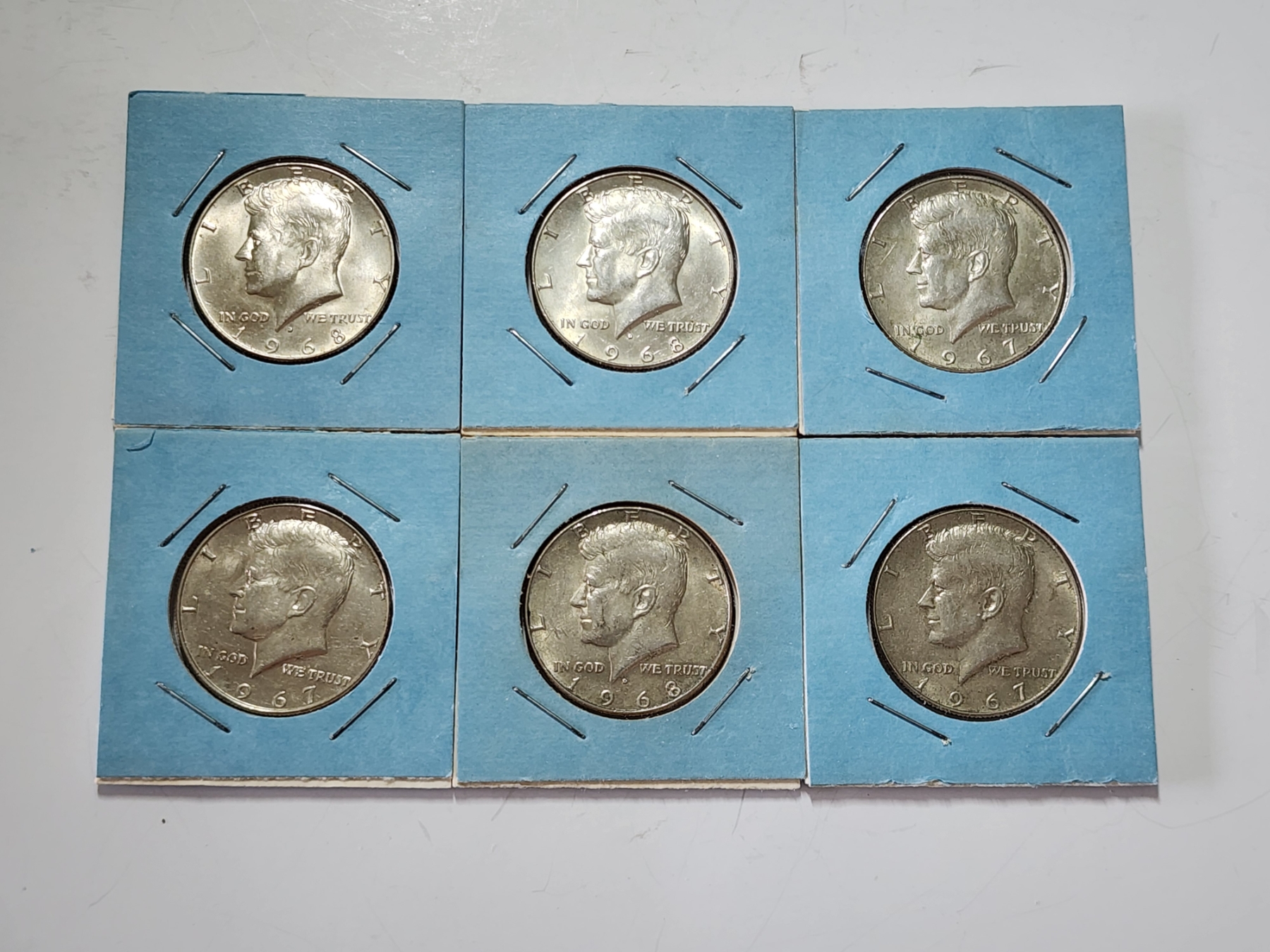 x6 Assorted Years 40% Silver Kennedy Half Dollars FV: $3.00