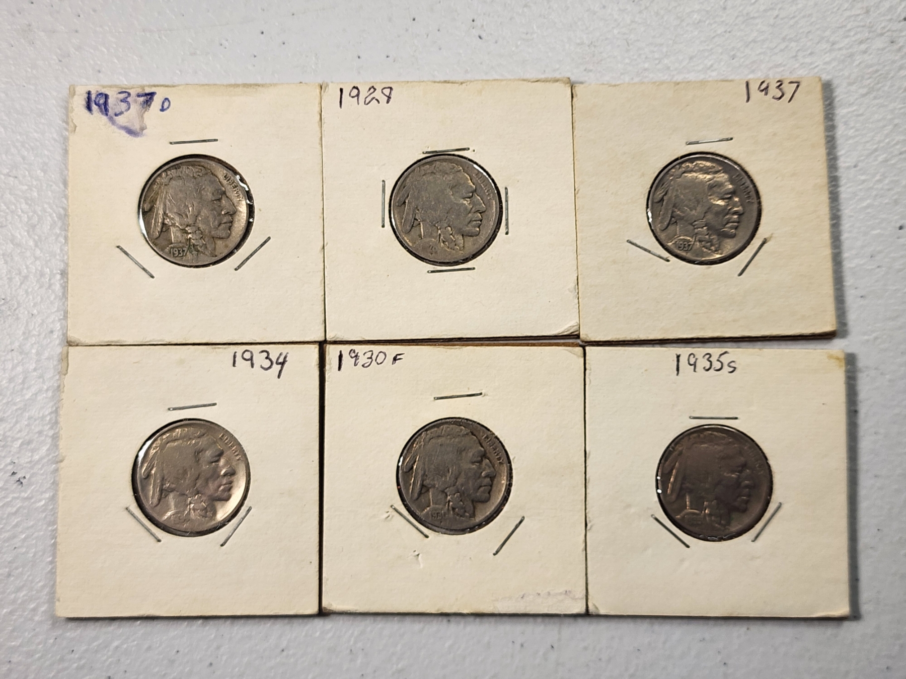 x6 Assorted Years Buffalo Nickels FV: $0.30