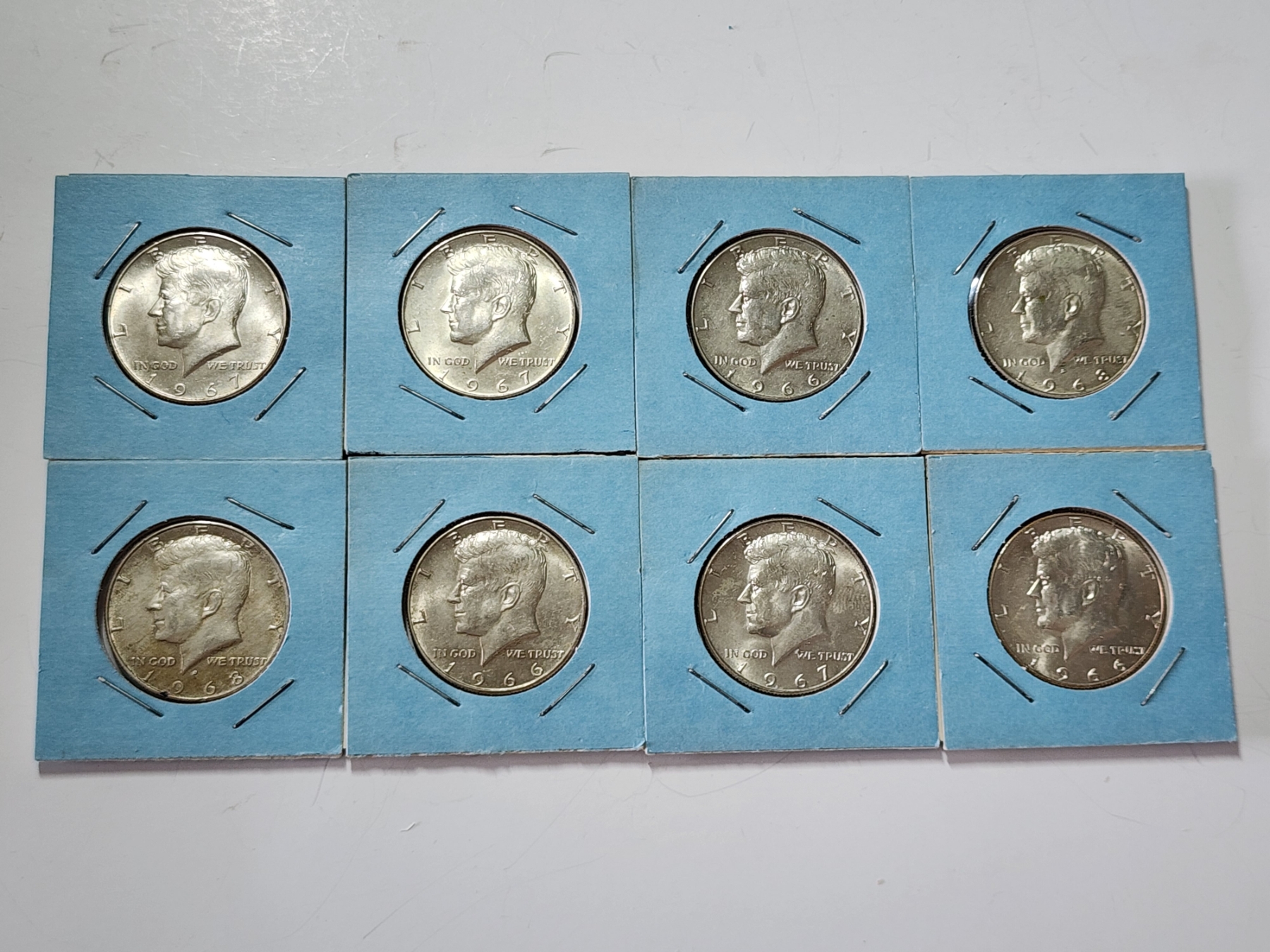 x8 Assorted Years 40% Silver Kennedy Half Dollars FV: $4.00