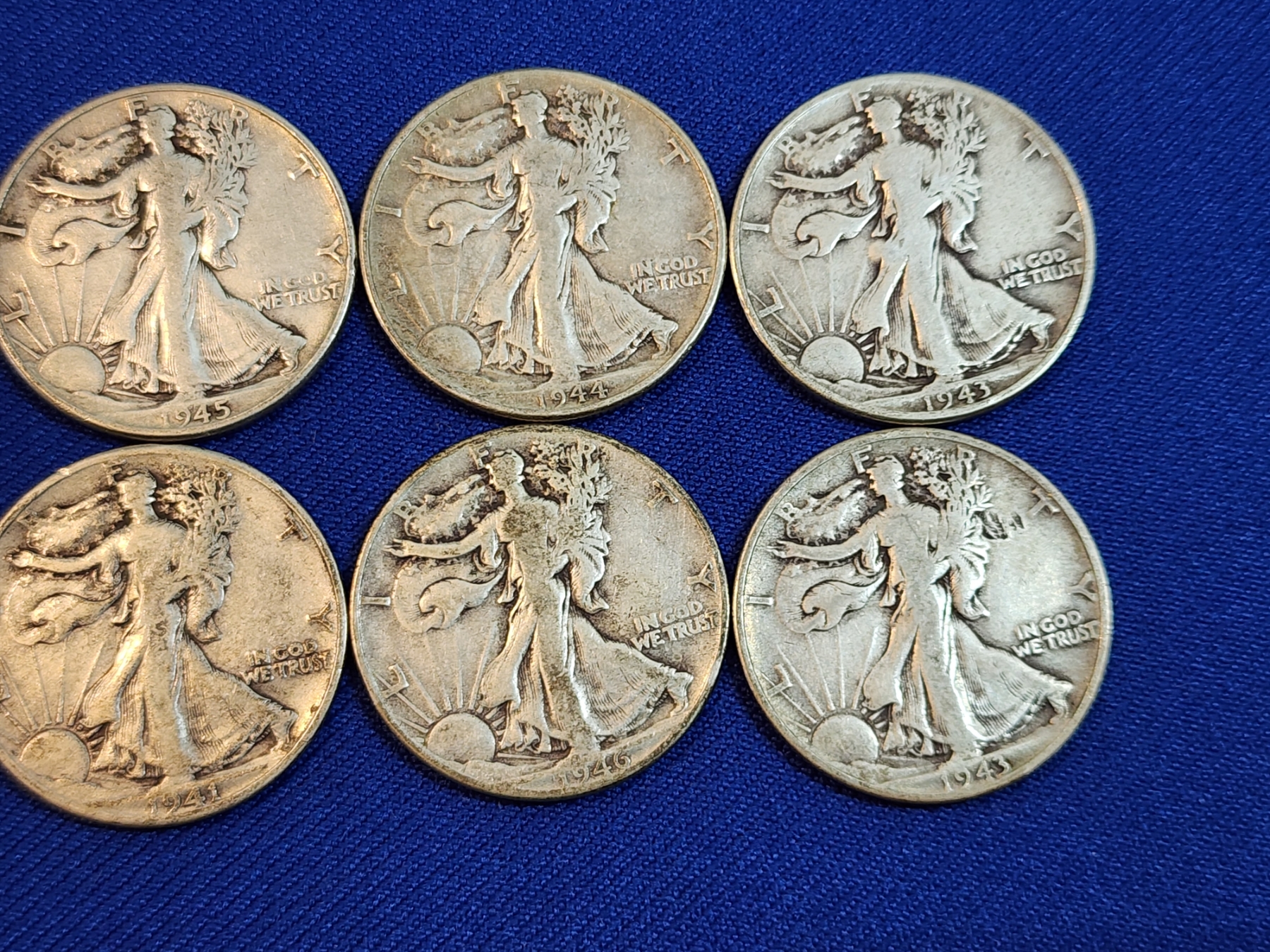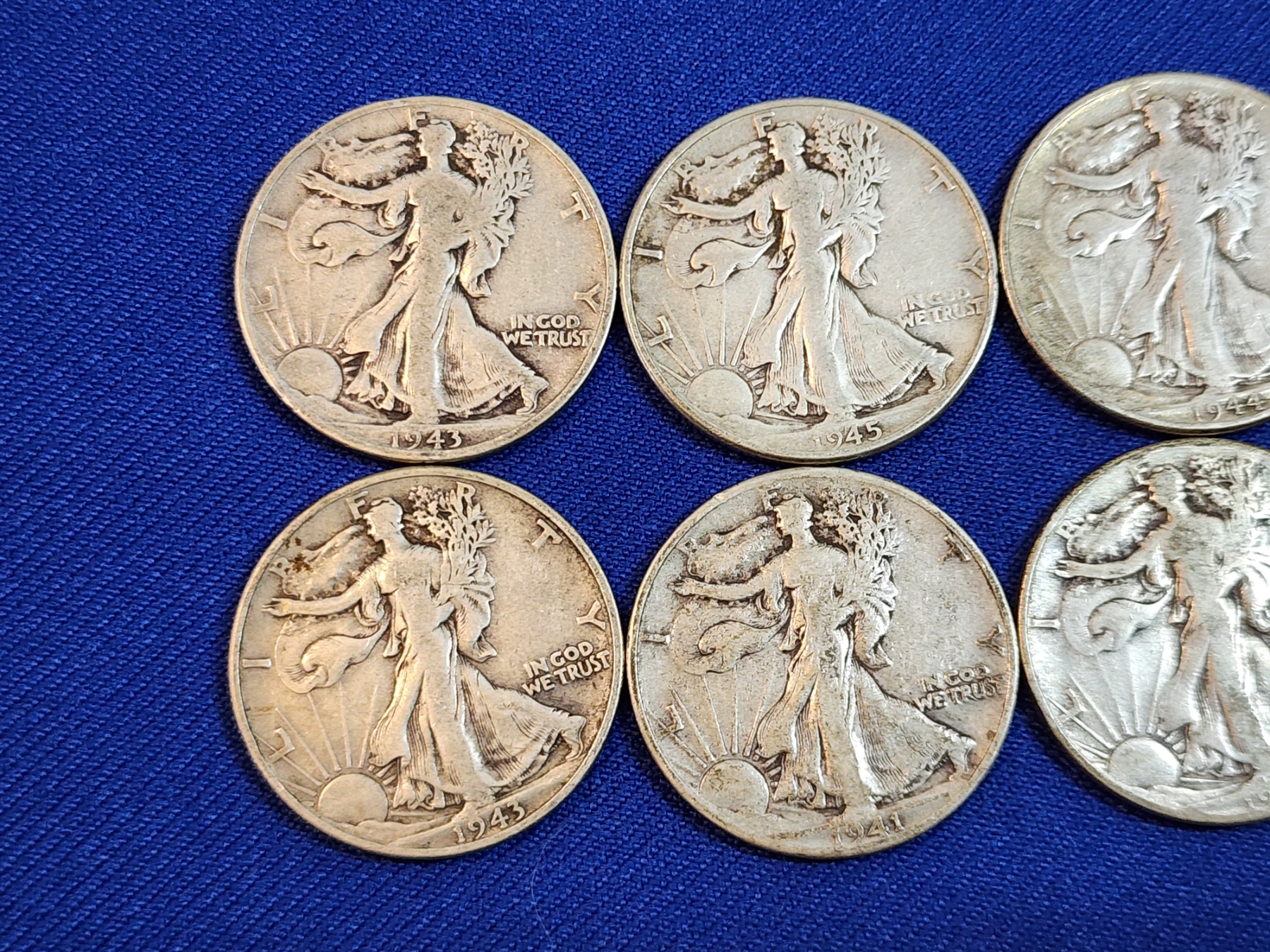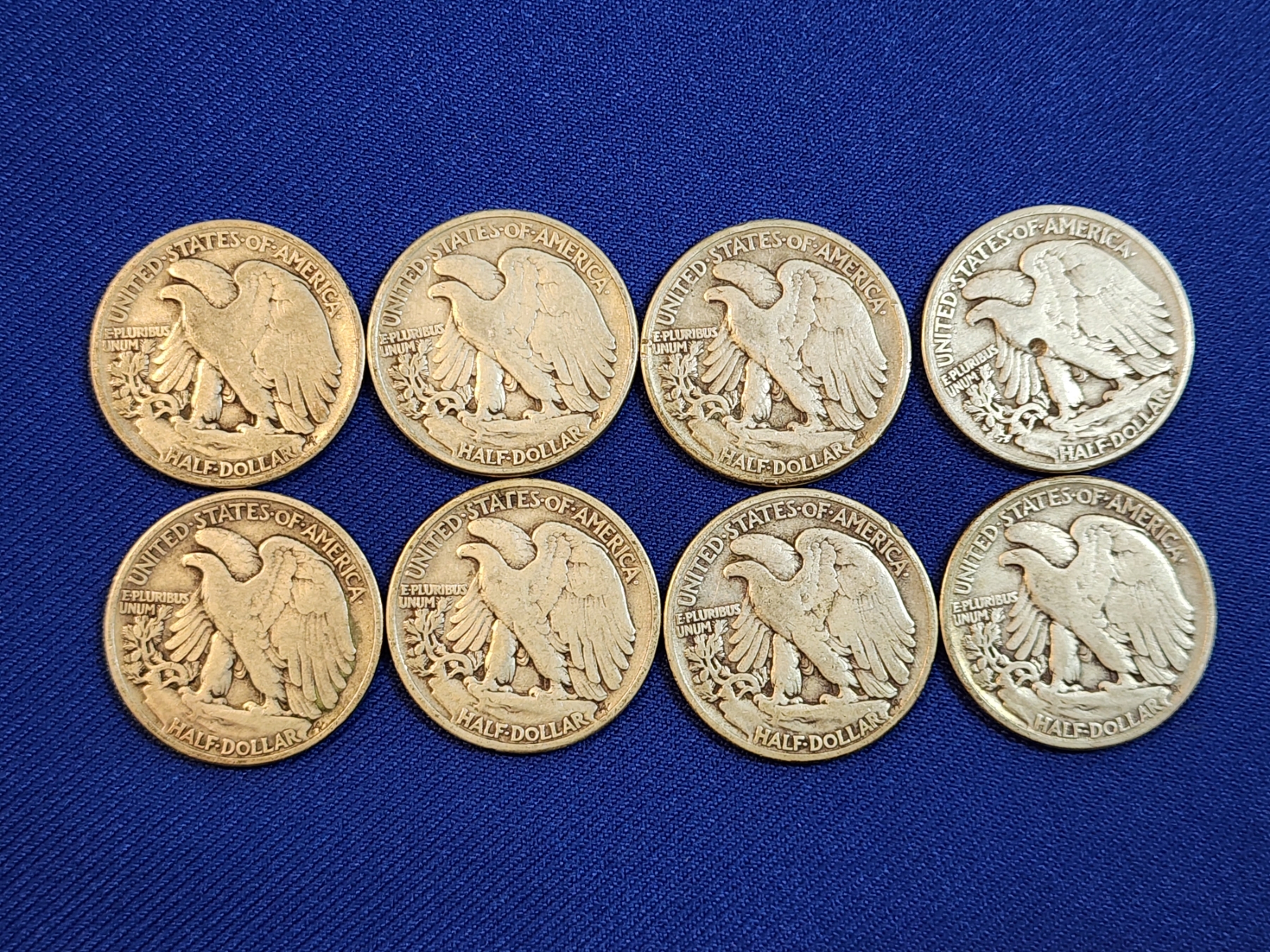 x8 Assorted Years 90% Silver Walking Liberty Half Dollars FV: $4.00