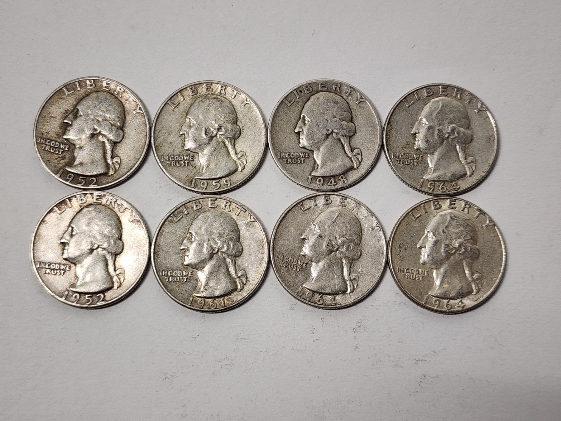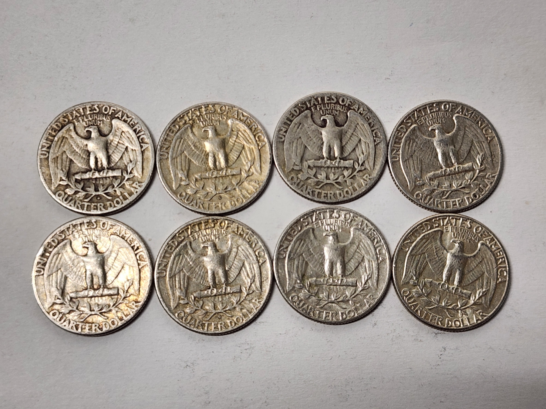 x8 Assorted Years 90% Silver Washington Quarters - FV: $2.00
