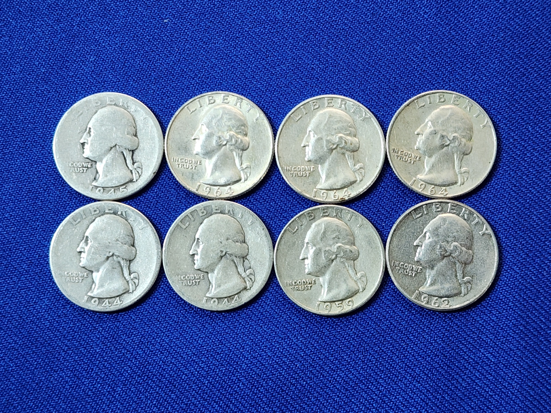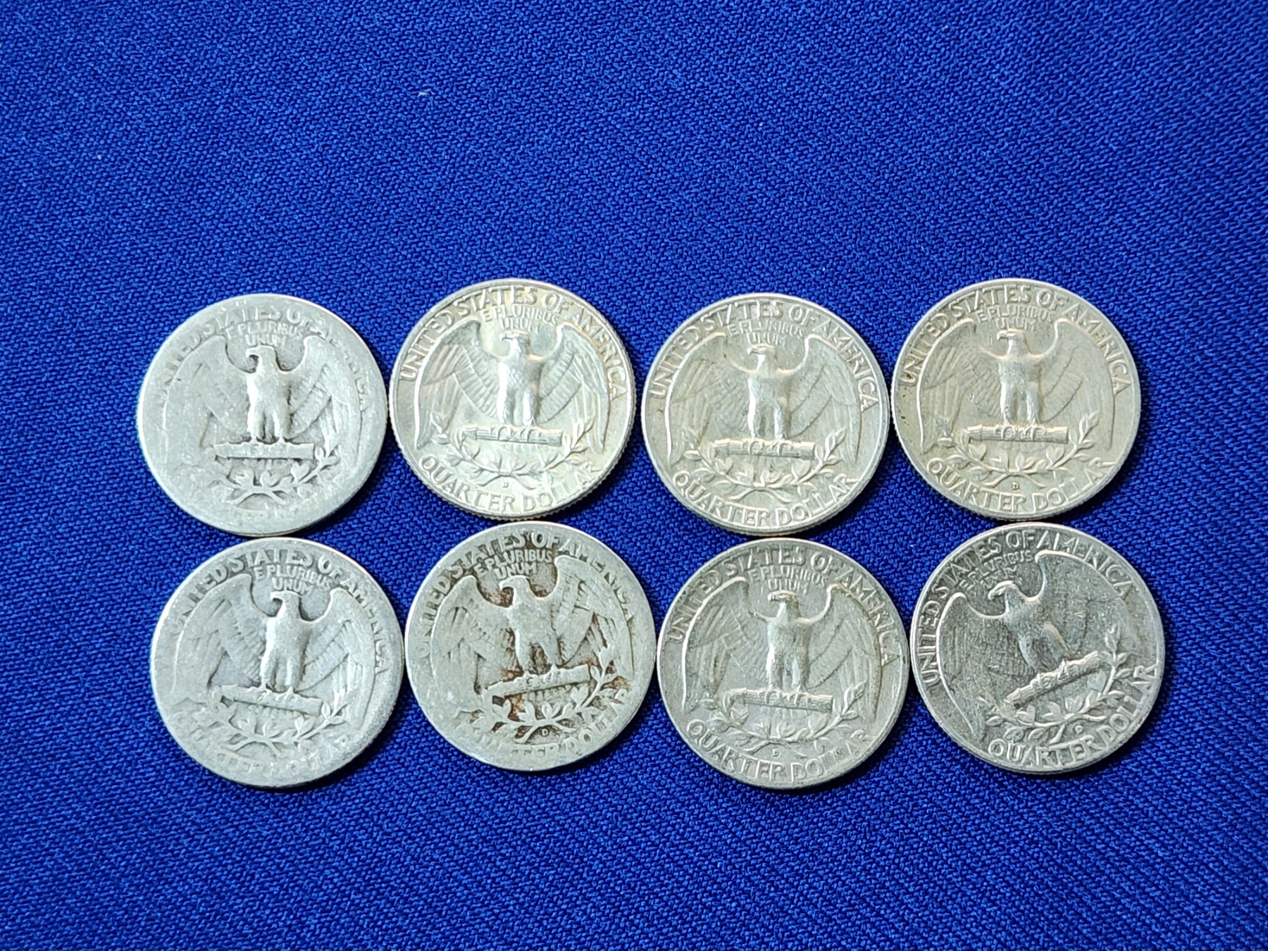 x8 Assorted Years Silver Washington Quarters FV: $2.00