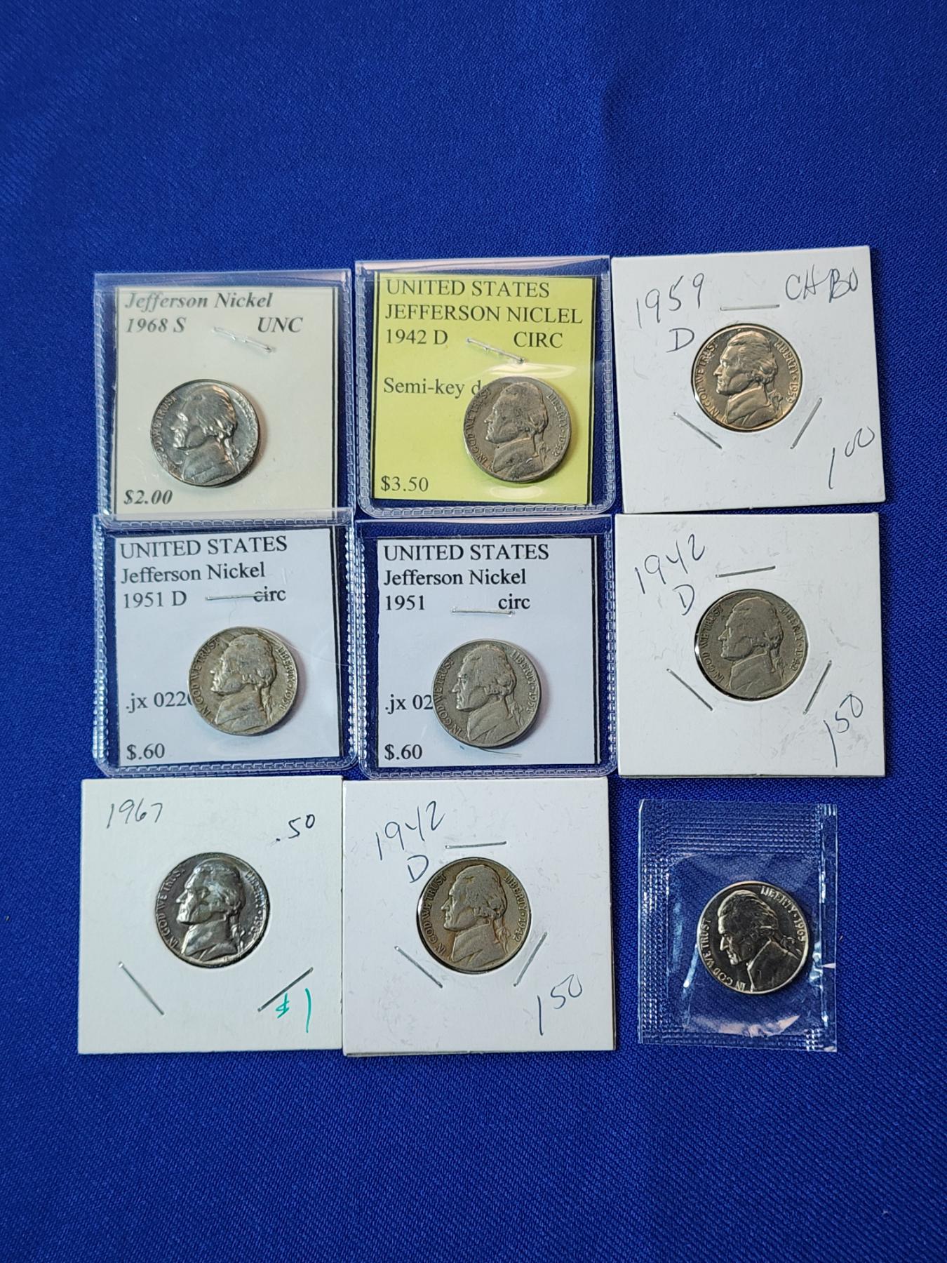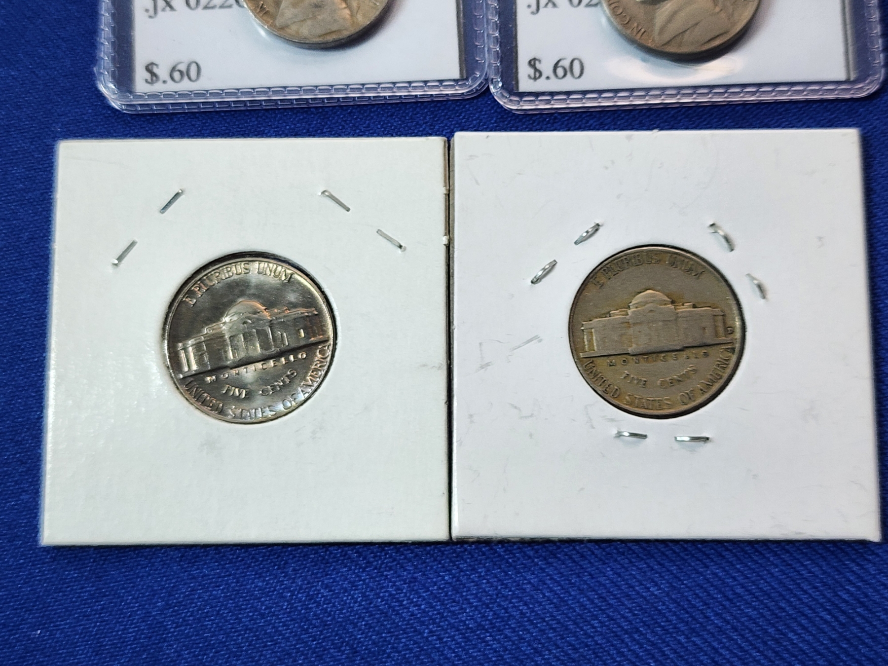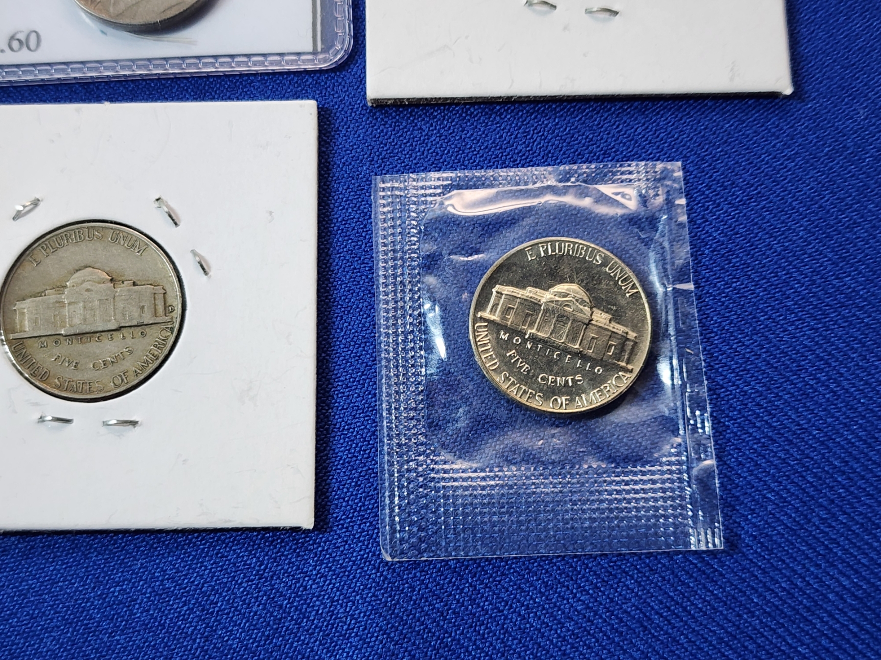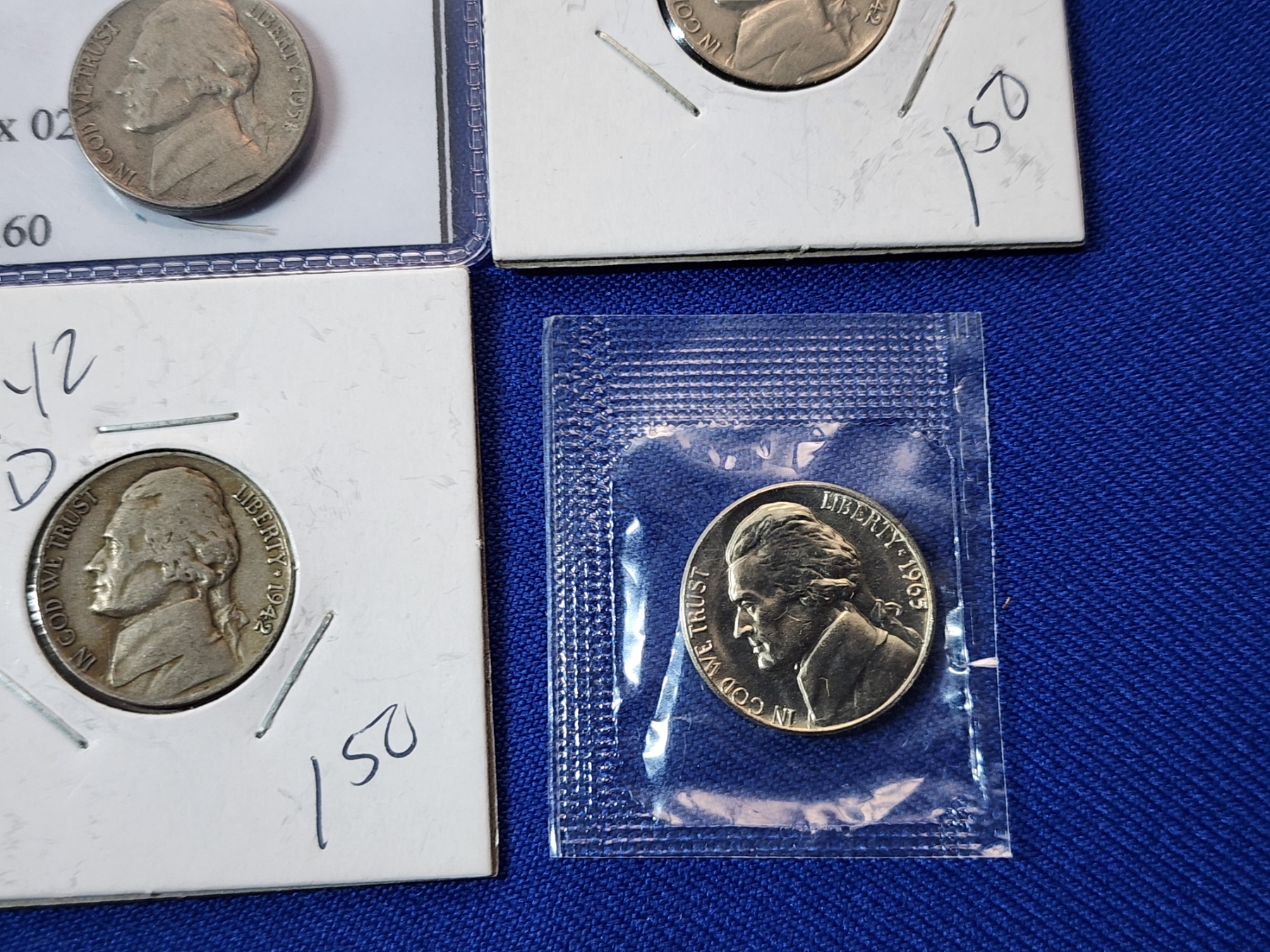 x9 Assorted Jefferson Nickels Including Uncirculated, Semi-Key Date FV: $0.45