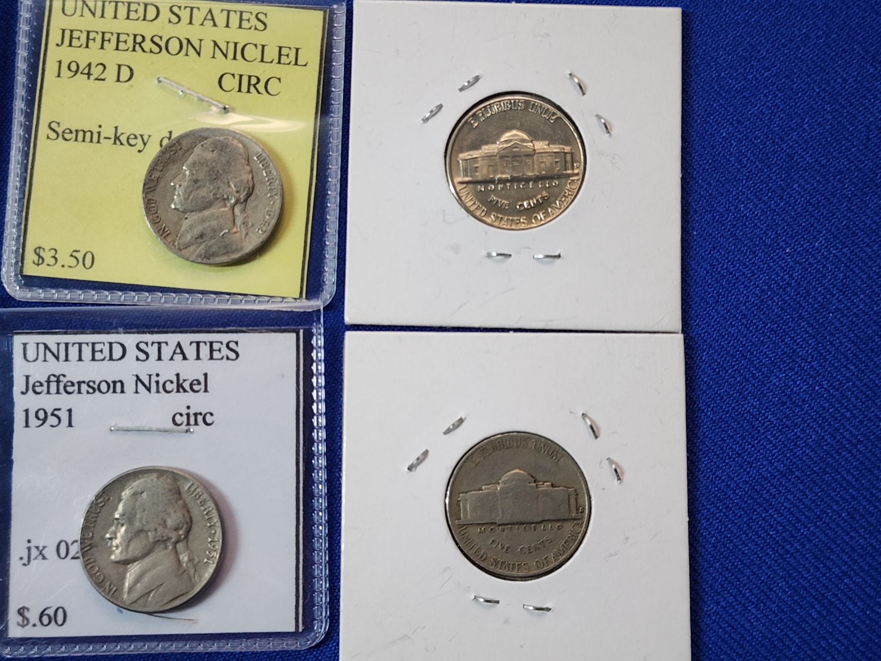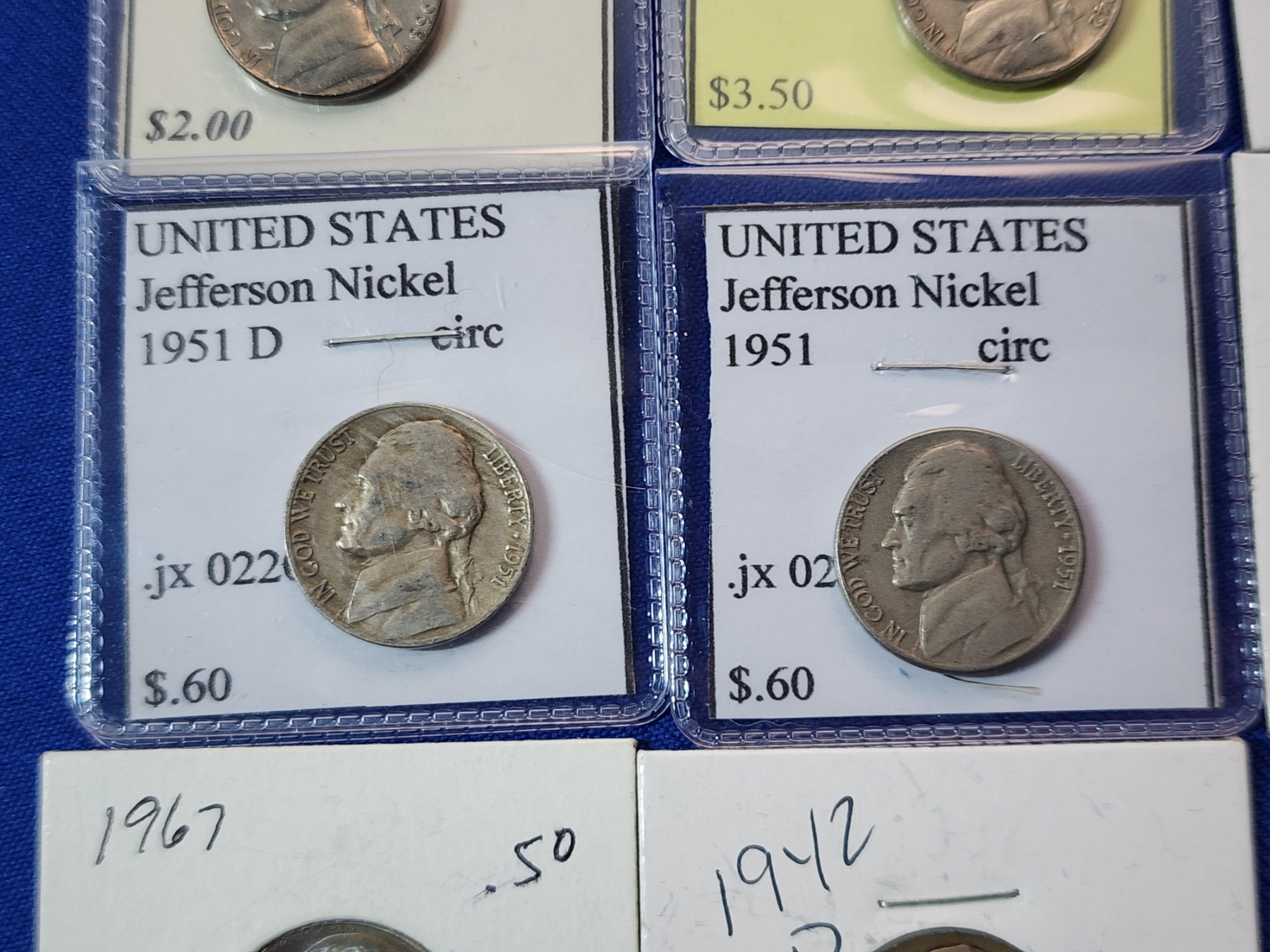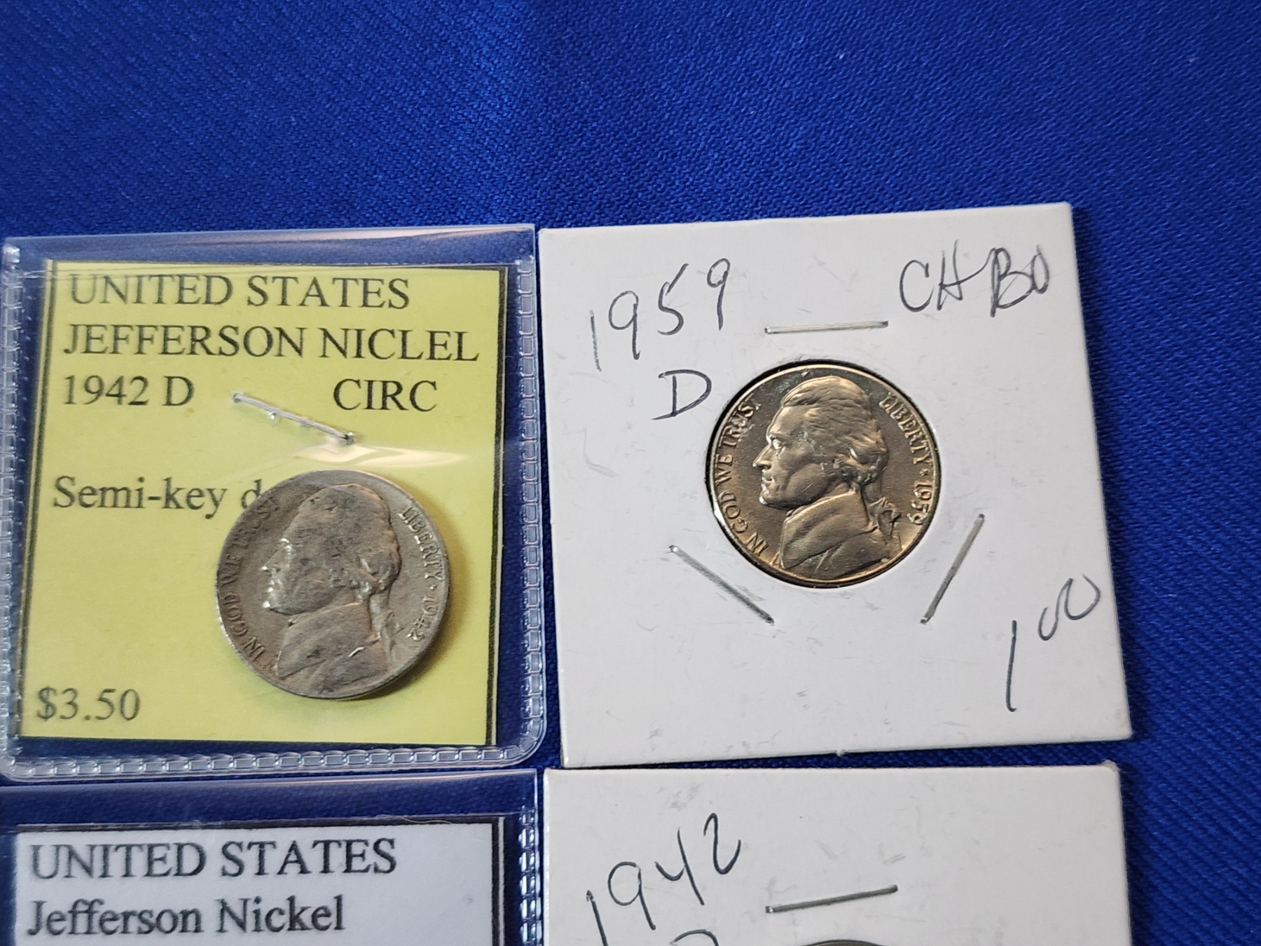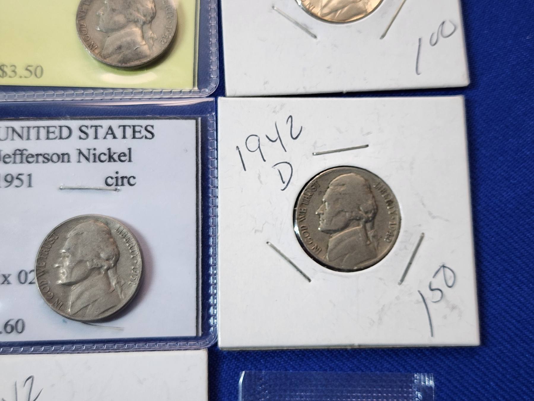 x9 Assorted Jefferson Nickels Including Uncirculated, Semi-Key Date FV: $0.45